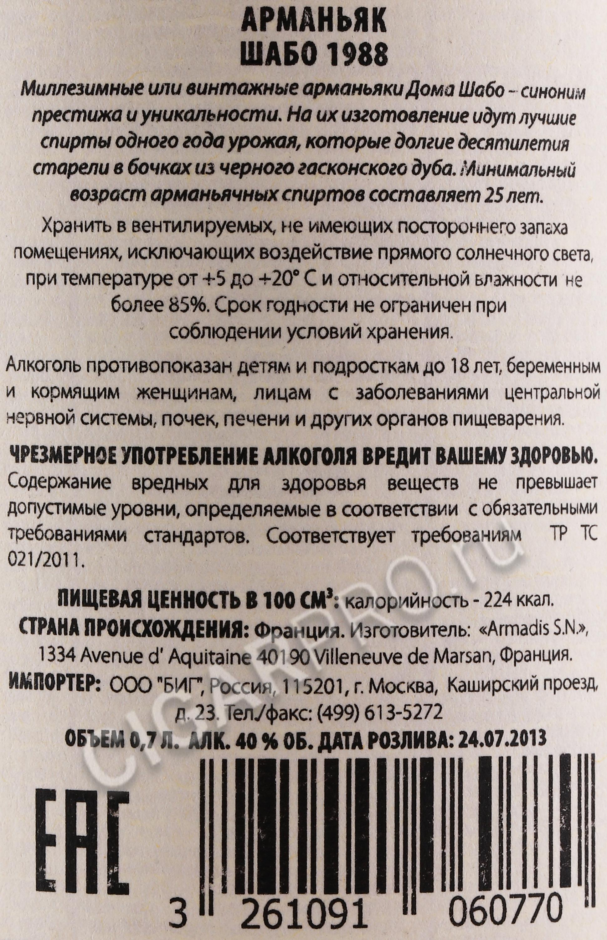 Отзывы на Chabot 1988 years Арманьяк Шабо 1988г 0.7л в подарочной тубе