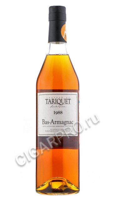 Арманьяк Шато дю Тарике 1988 года поставляется в массивной картонной упаковке и имеет объём бутылки: 0,7 с крепостью: 45,5%.