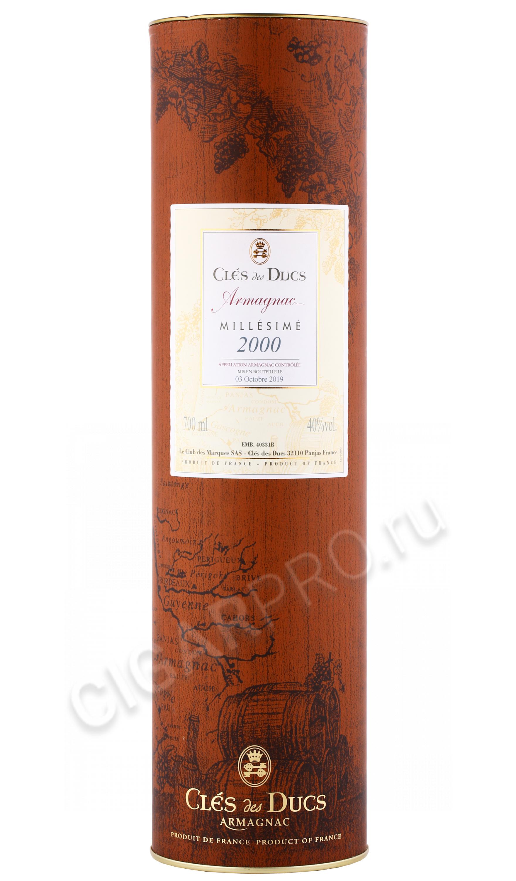 Cles des Ducs Millesime 2000 years Арманьяк Кле де Дюк Миллезим 2000г 0.7л в подарочной тубе