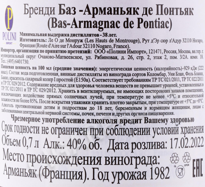 Арманьяк де Понтьяк 1982года - старейший бренди с контролируемым обозначением происхождения (AOC) во Франции, производимый из определенных сортов винограда в историческом регионе Гасконь, от которого он получил свое название и который до сих пор является основным местом производства этого выдающегося напитка. В отличие от коньяка, арманьяк производится не в промышленных масштабах, а небольшими партиями в ограниченных количествах, где в дальнейшем выдерживается в дубовой бочке. Баз Арманьяк де Понтьяк винтажа 1982 года представляет собой изысканный, богатый, высококачественный и сложный виноградный дистиллят, предназначенный для истинных ценителей! Это превосходный арманьяк идеален для завершения трапезы или медитации в сопровождении с сигарой, которым можно наслаждаться в чистом виде и конечно миллезимный арманьяк всегда является приятным подарком.