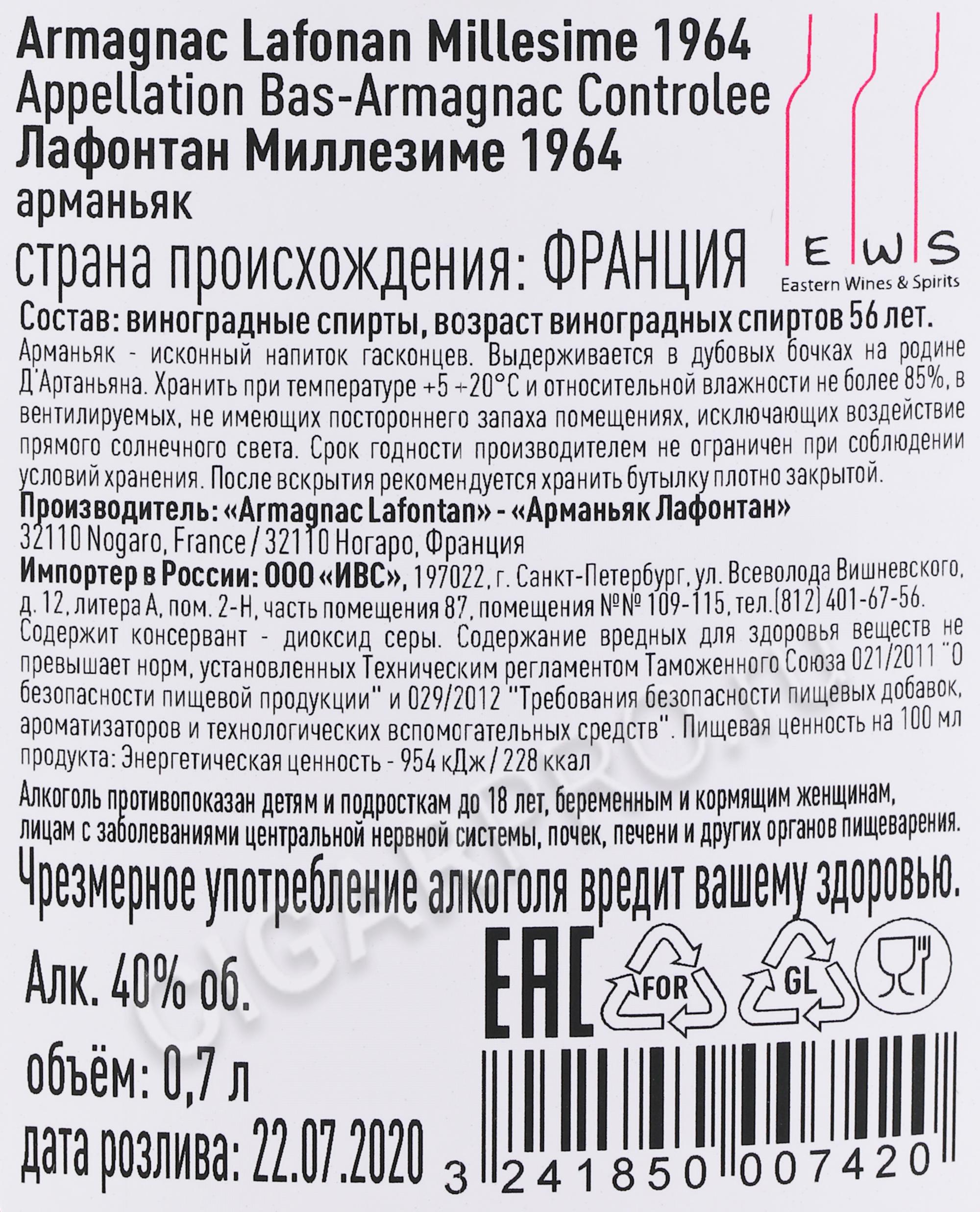 Отзывы на Lafontan 1964 years Арманьяк Лафонтан 1964 года 0.7л в деревянной коробке