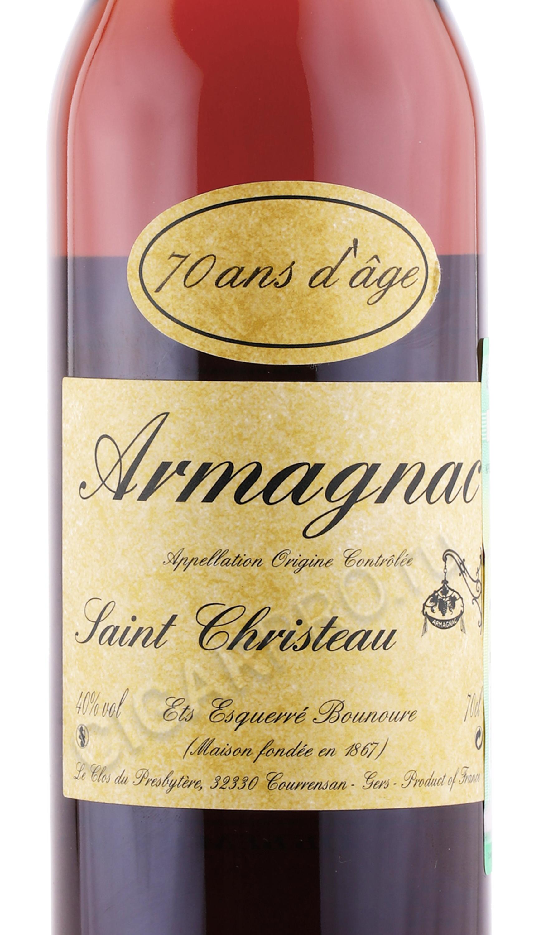 Арманьяк Сент Кристо 70 лет поставляется в массивном деревянном коробе и имеет объём бутылки: 0,7 с крепостью: 40%.