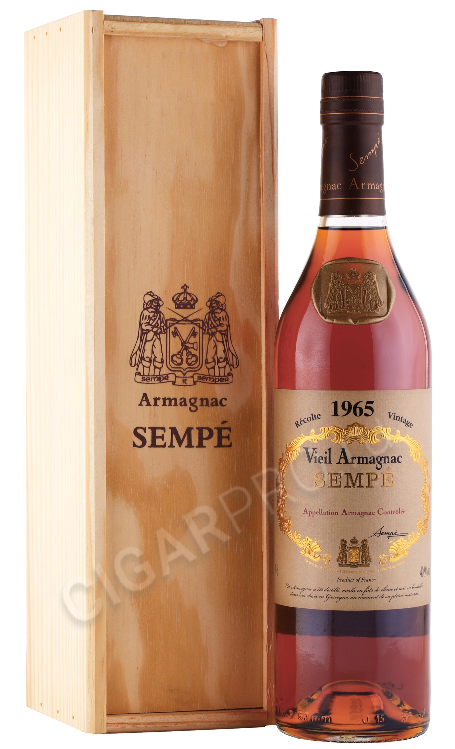 Armagnac Sempe Vieil 1965 years Арманьяк Семпэ Вьей 1965 года 0.5л в деревянной коробке