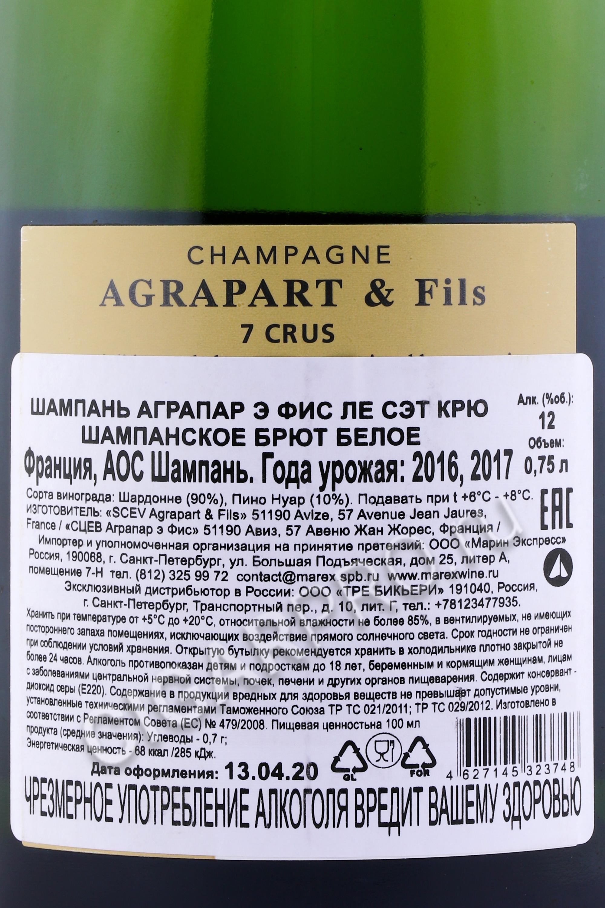 Agrapart 7 Crus Brut Шампанское Аграпарт 7 Крю Брют 0.75л