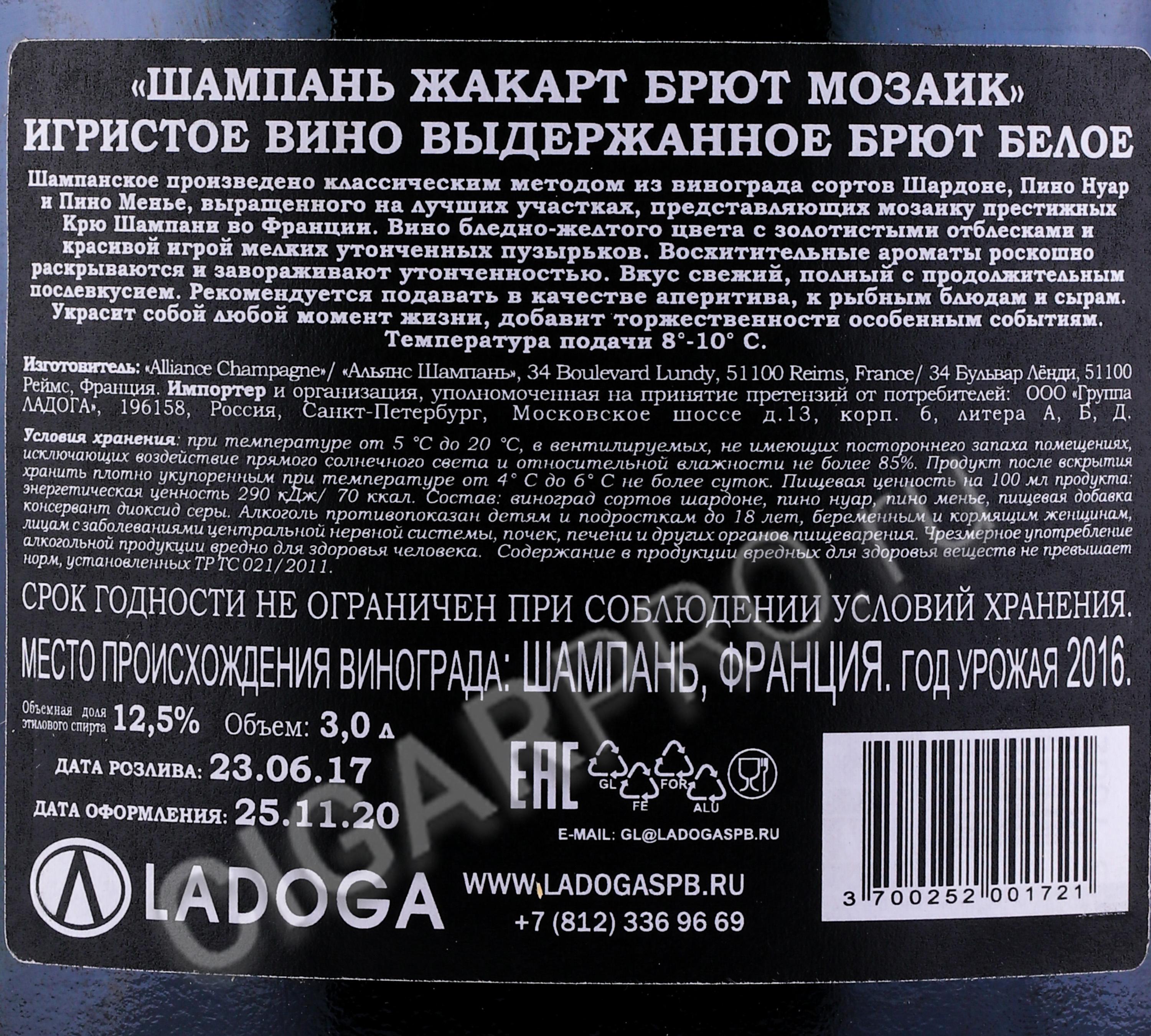 - Jacquart Brut Mosaique Шампанское Шампань Жакарт Мозаик Брют Белое 3л в деревянной коробке
