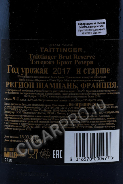 Taittinger Brut Reserve Шампанское Тэтэнжэ Брют Резерв 9л