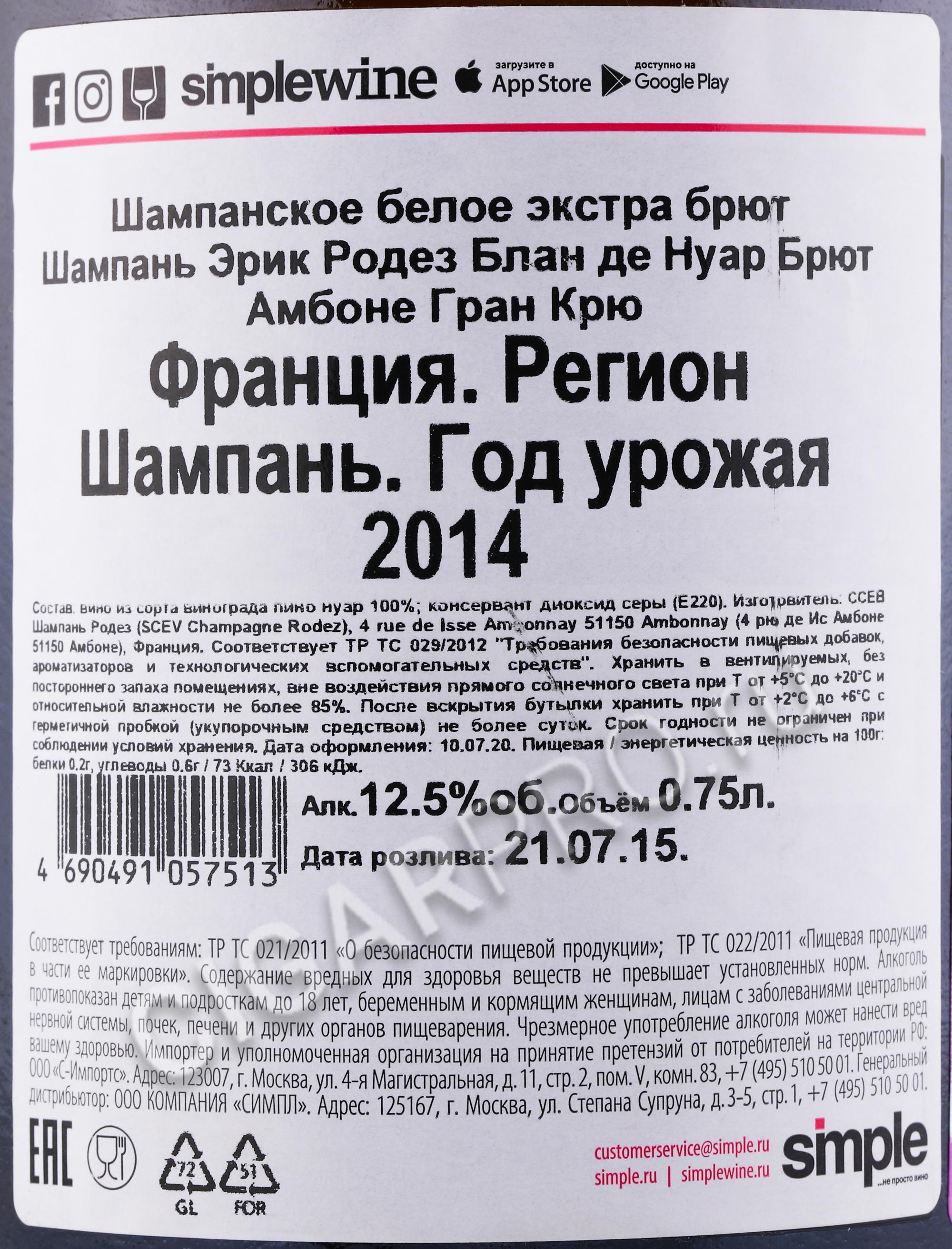 - Eric Rodez Blan De Noir Шампанское Эрик Родез Блан де Нуар 0.75л