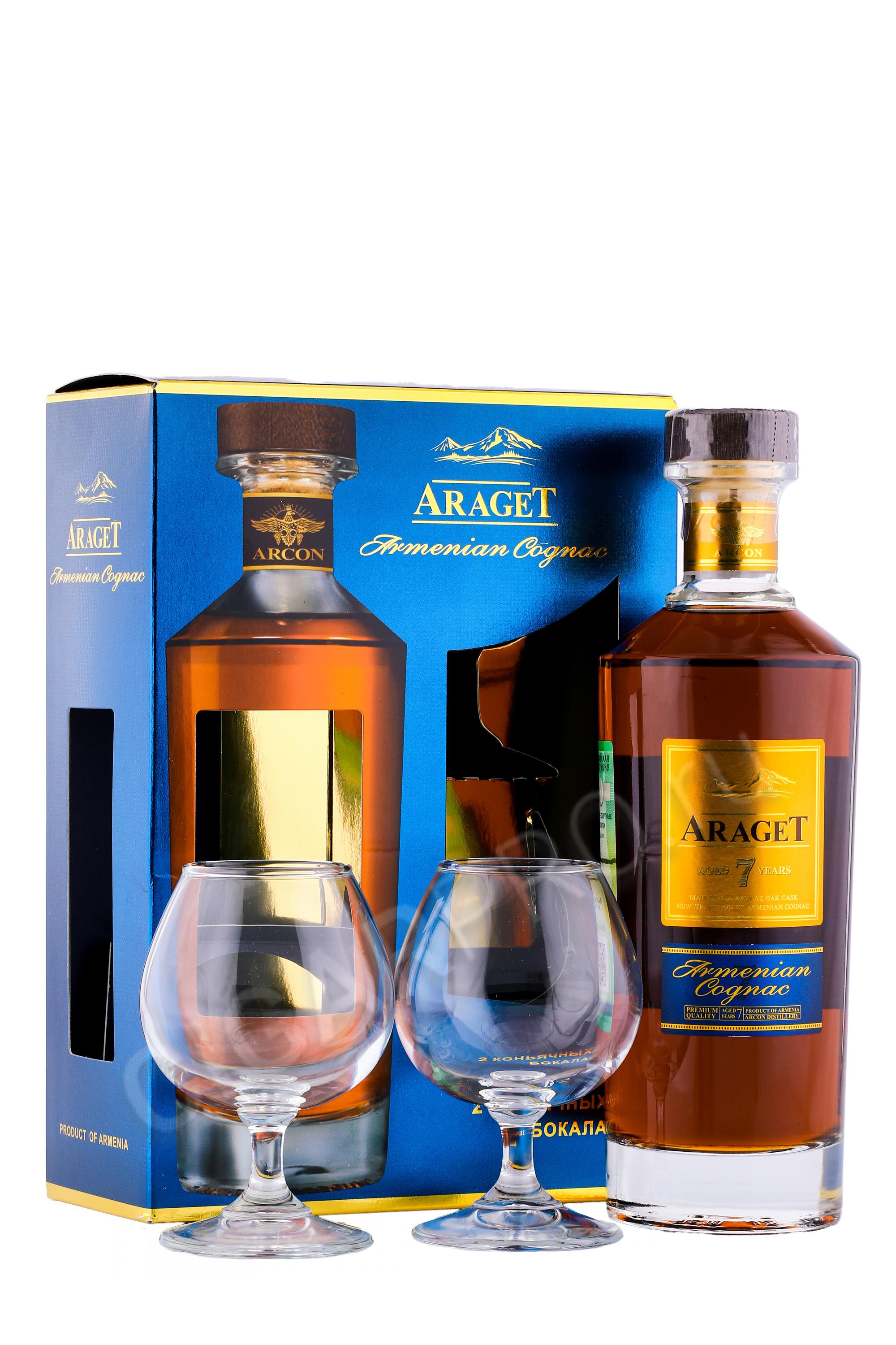 Коньяк Арагет 7 лет + 2 бокала 0.5л в подарочной упаковке