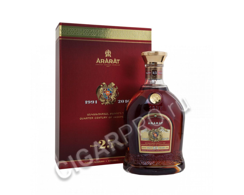 Армянский коньяк Арарат 25 произведен в Республике Армения из коньячных дистиллятов, средний возраст которых не менее 25 лет. Минимальный возраст коньячных дистиллятов не менее 22 лет, максимальных возраст 50 лет.