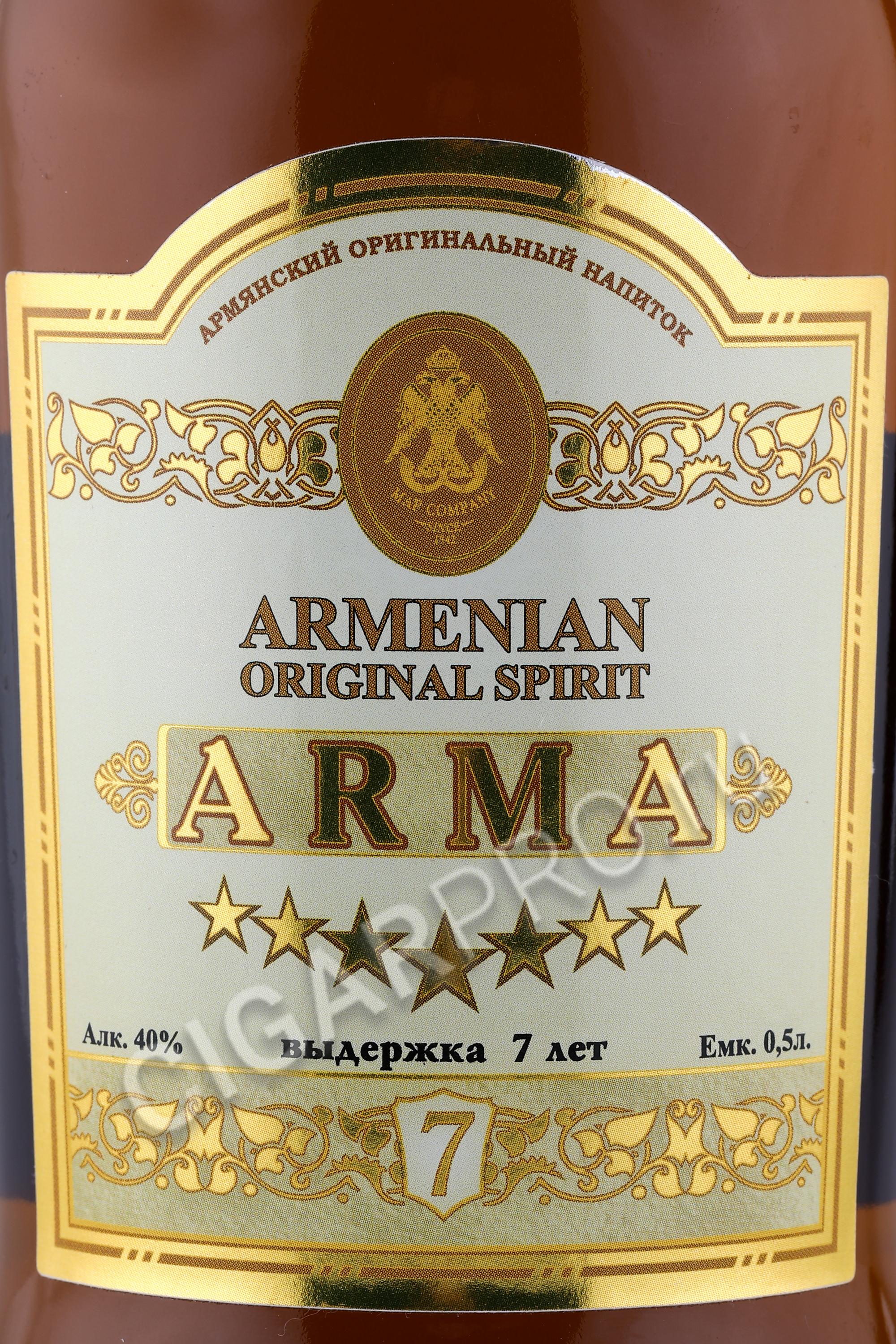 Арма 7 лет это уникальный алкогольный напиток, созданный на заводе МАП по авторской рецептуре, которая включает в себя выдержку в бочках из-под мускатного, где после выдержки для снижения градуса коньячного спирта вместо воды используется мускатное вино, что придаёт напитку дополнительные тона кураги, чернослива, изюма, дыни и банана. Этот уникальный напиток будет прекрасным аперитивом и будет прекрасно сочетаться с сухофруктами и сладкими десертами. Арма 7 лет продаётся в элегантной картонной коробке, которая даст вам возможность сделать приятный подарок вашим друзьям и знакомым.