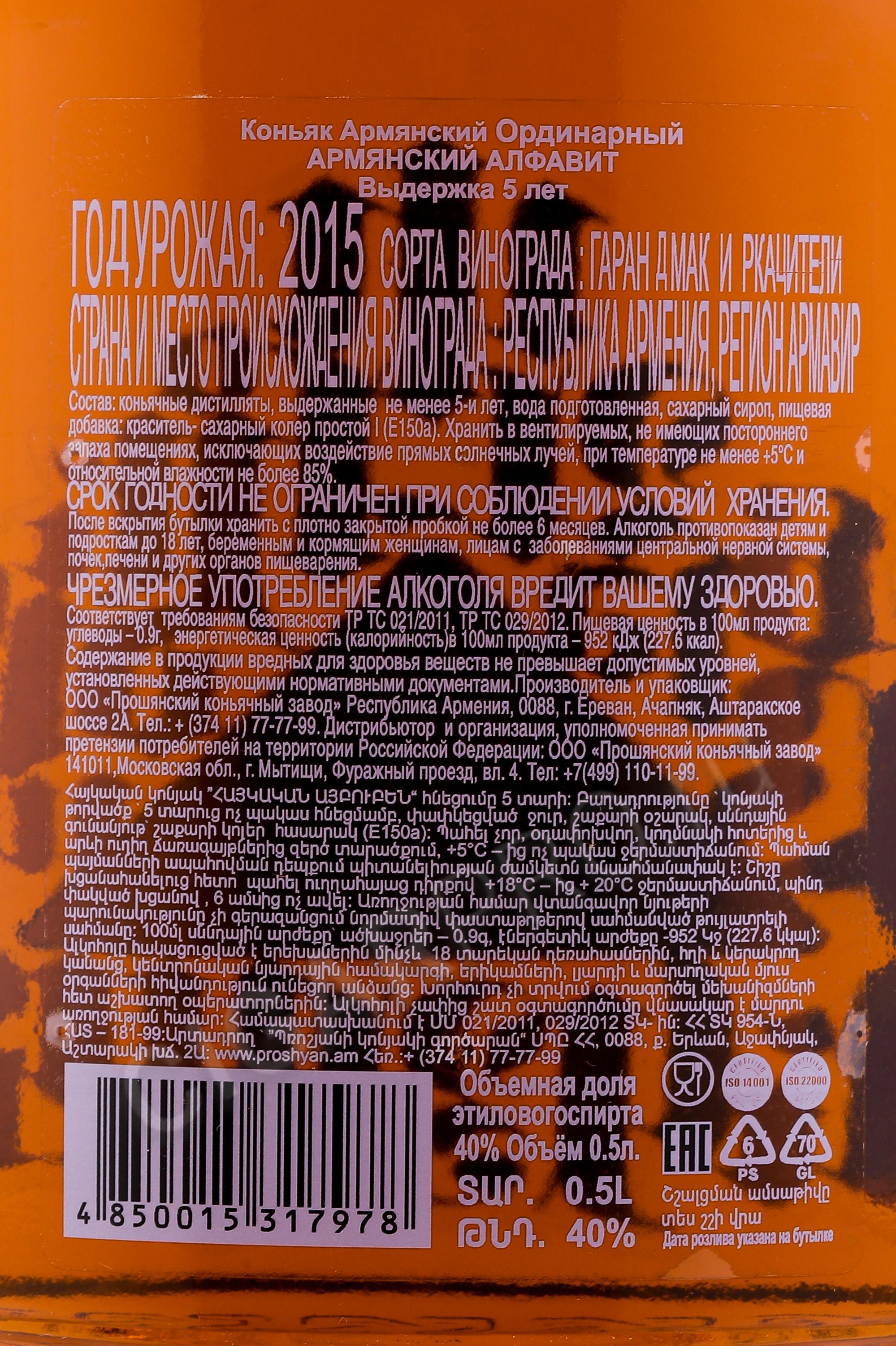 - Коньяк Армянский алфавит выдержка 5 лет 0.5л