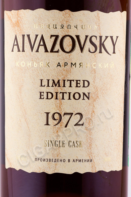 Коньяк Айвазовский Лимитированная 1972 г 40% Армения. Производитель армянских коньяко ЗАО «МАП» произвёл исключительное о-де-ви из винограда, урожая 1972 года. Напиток из одной бочки обрёл насыщенно фруктово-терпкие тона, похожие на картины