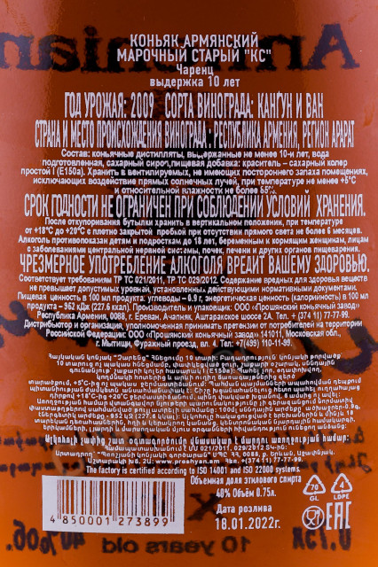 Коньяк армянский Чаренц выдержка 10 лет настоящий, произведен по классической технологи путем купажирования коньячных дистиллятов минимальной выдержки 10 лет, выдержанных в особых бочках из черного Карабахского дуба.