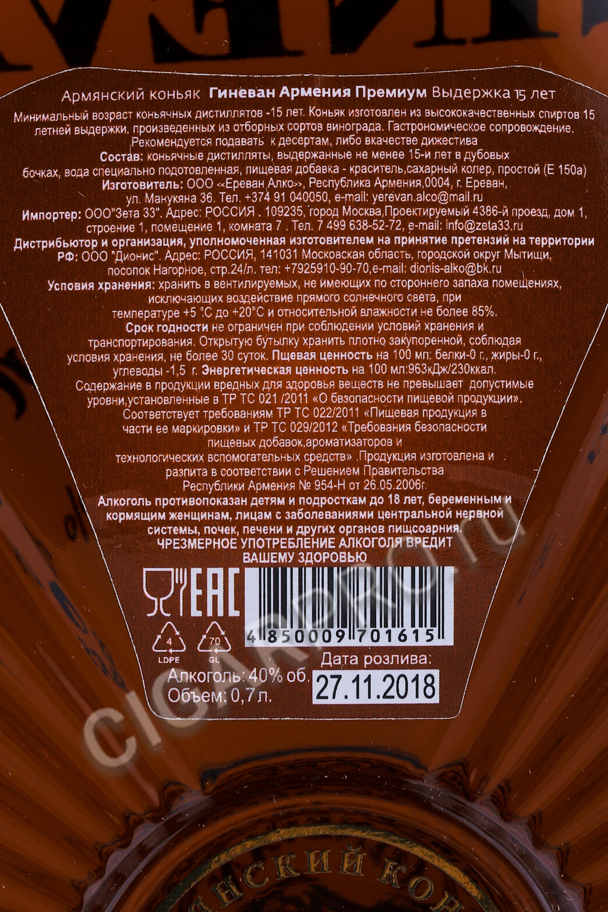 Ginevan Armenia Premium 15 years Коньяк Гиневан Армения Премиум 15 лет 0.7л