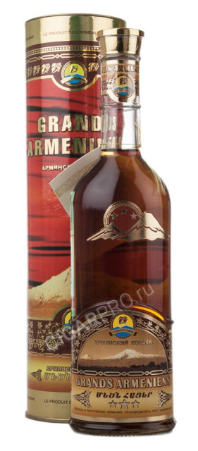 Коньяк Грандс Армениенс производится в соответствии с традиционной армянской технологией из автохтонных сортов Гарандмак и Кангун. Высокогорный виноград даёт насыщенность вкуса. Плантация располагается в центральной части Араратской долины, где царит теплый и мягкий микроклимат. Каждая гроздь собирается в ручную и бережно сортируется. Коньяк Грандс Армениенс выдерживается в бочках из кавказского дуба и разливается в стильные бутылки из прозрачного стекла, закупоренные корковыми пробками.