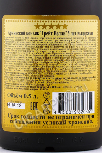 Great Valley 5 Years Old Коньяк Грейт Велли 5 лет 0.5л