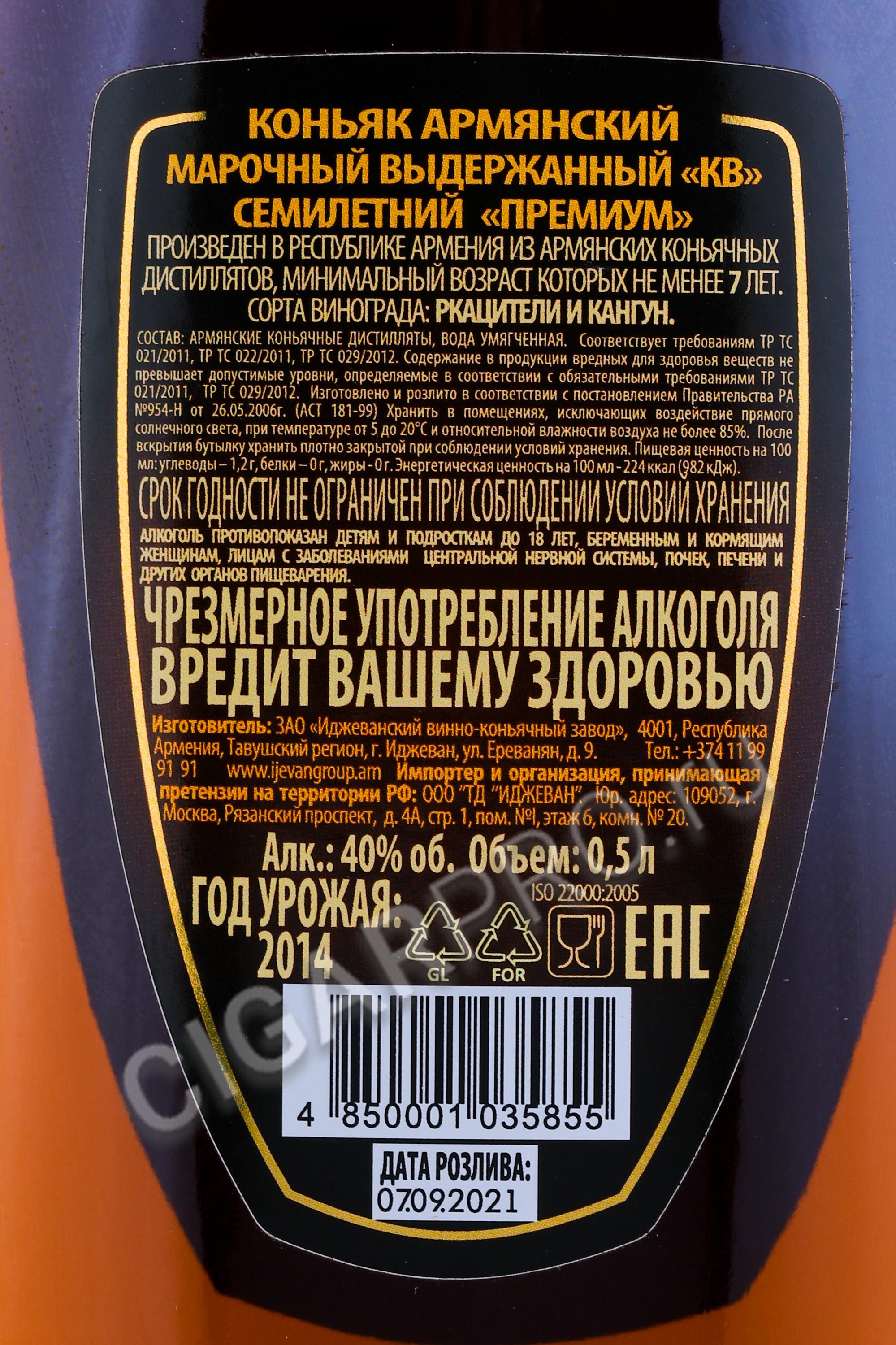 Коньяк Иджеван Премиум 7 лет 0.5л