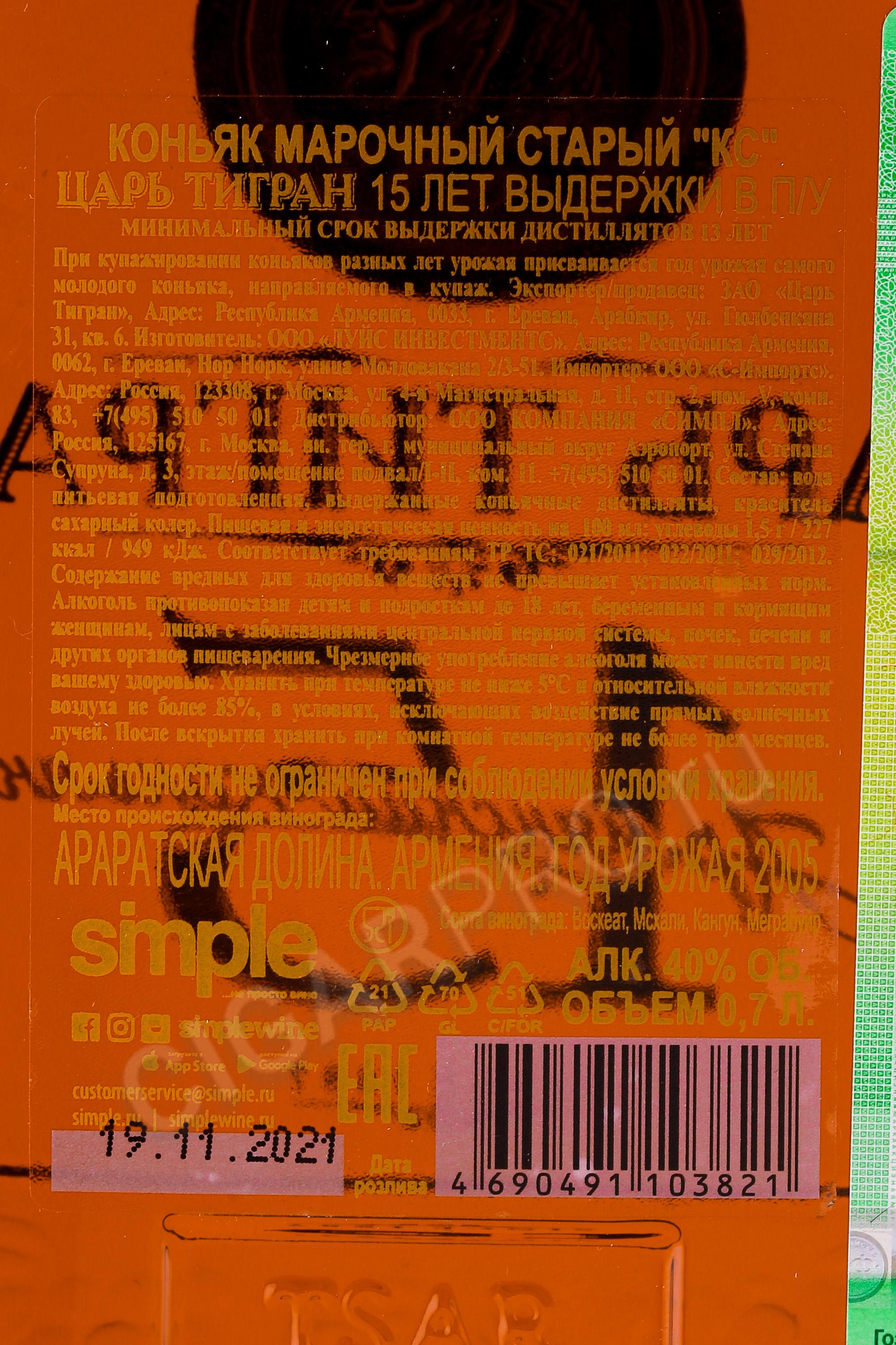 - Коньяк Царь Тигран 15 лет Армения 0.7л в подарочной упаковке