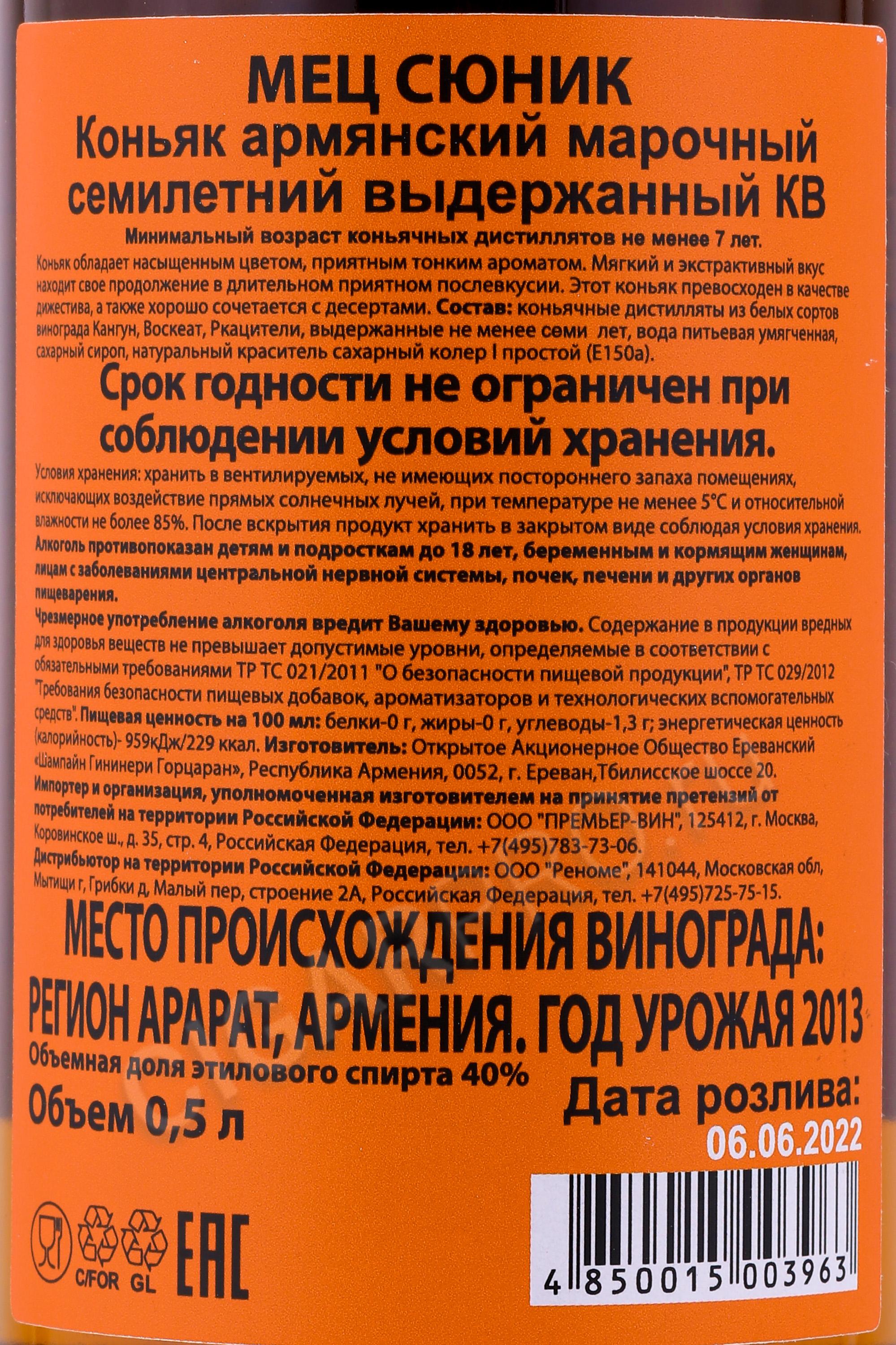 Коньяк Мец Сюник КВ 7 лет 0.5л в подарочной упаковке