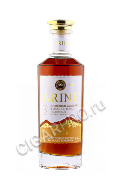 Арине назван в честь города – крепости в древней Армении, который был построен в VIII веке до нашей эры. Он был очевидцем героических сражений армянского народа за свободу. Этот коньяк винифицируется по традиционной технологии в Араратской долине. Мягкий сбалансированный вкус «Арине» с элегантными оттенками шоколадно – ванильных тонов, наполнен лучами тепла солнца. Прекрасный аперитив, либо основа для коктейлей.