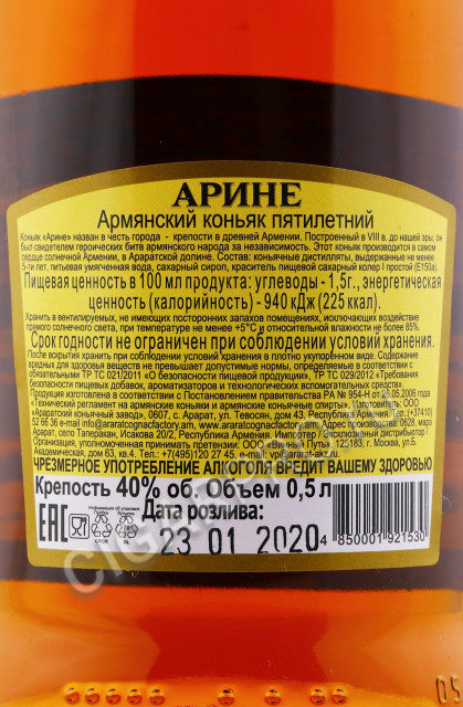 Arine 5 stars Коньяк Арине 5 звезд