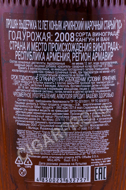 Proshyan 12 Years Old Коньяк Прошян КС 12 лет 0.5л в подарочной упаковке