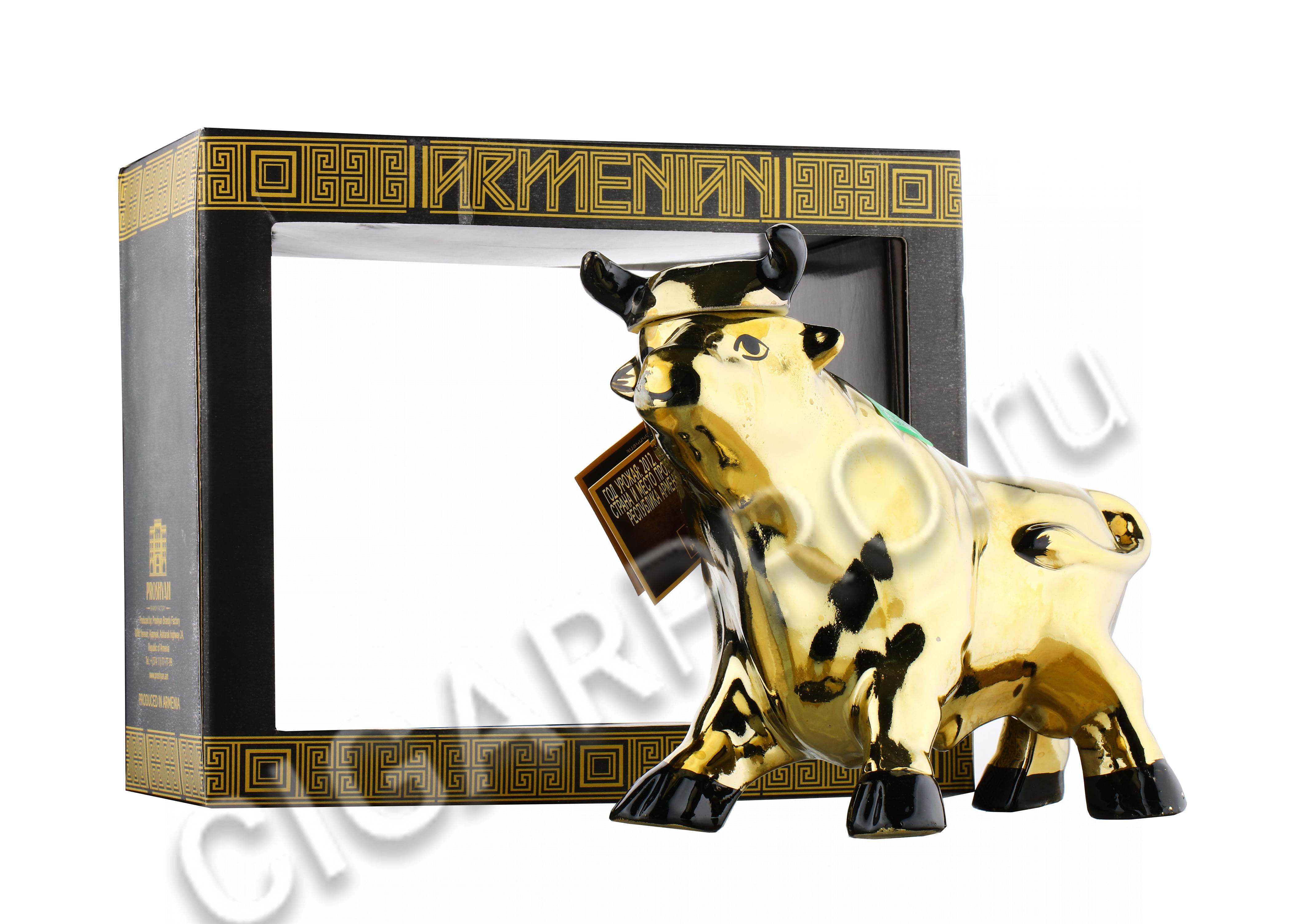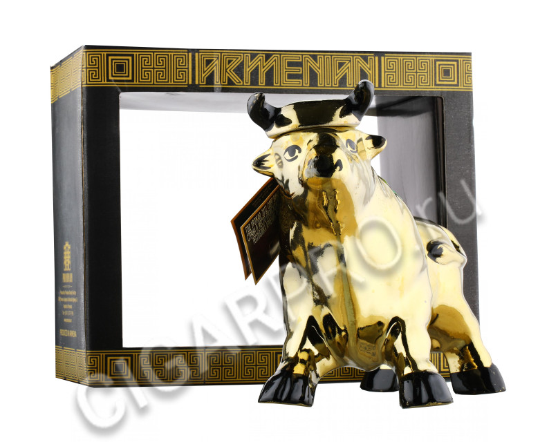 Коньяк 7 лет Бык 0.5 л производится в Армении классическим способом, подразумевающим вызревание спиртов белого винограда в бочках из цельного дуба в течение 5 лет и более. Он представляет собой купаж дистиллятов автохтонных белых сортов с привычным уровнем крепости — 40%. Коньяк выполнен в форме бычка, что будет прекрасным подарком на год быка.