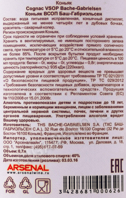 Bache Gabrielsen VSOP Коньяк Баш Габриэльсен ВСОП 0.7л