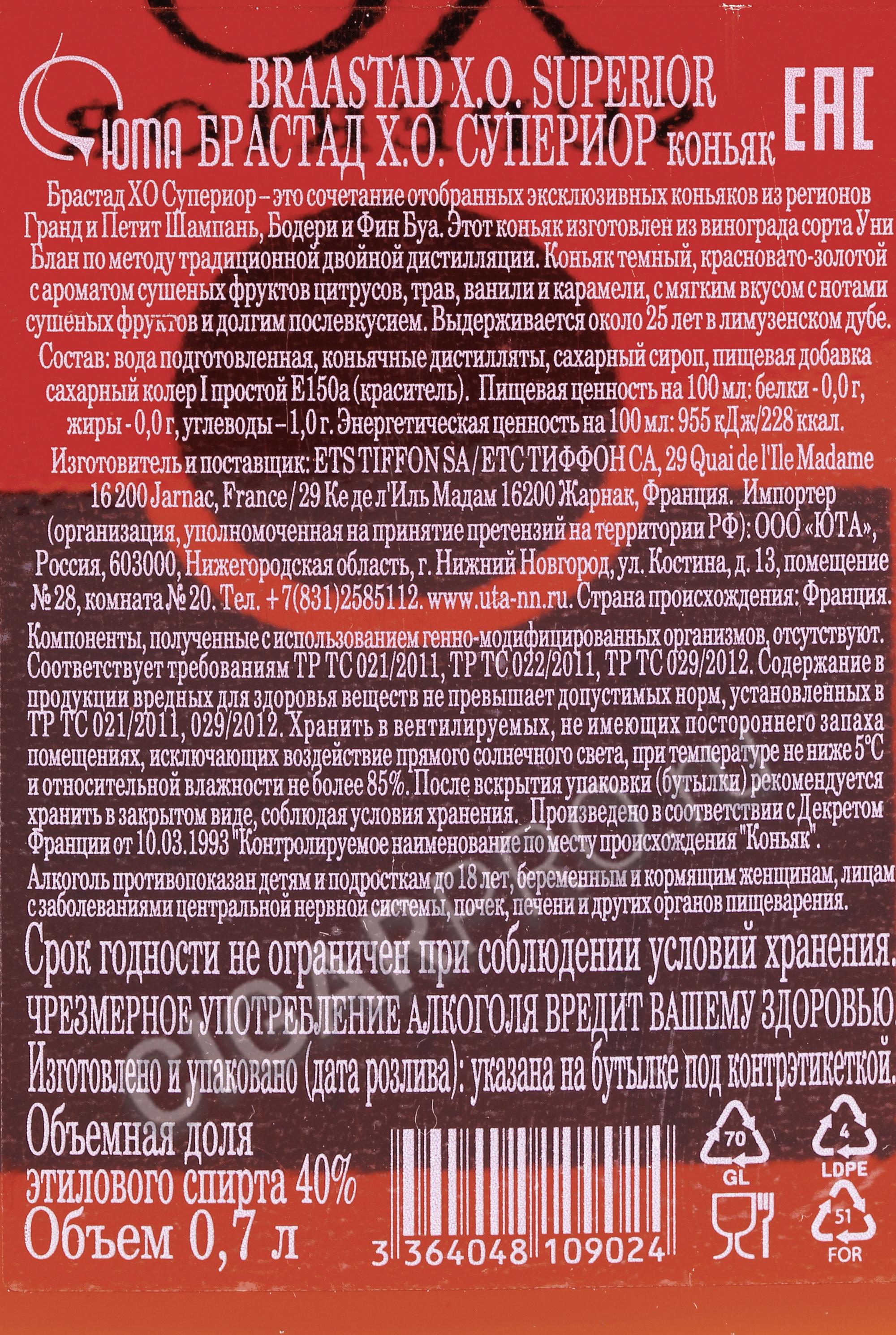 Коньяк Braastad XO Superior 0.7л