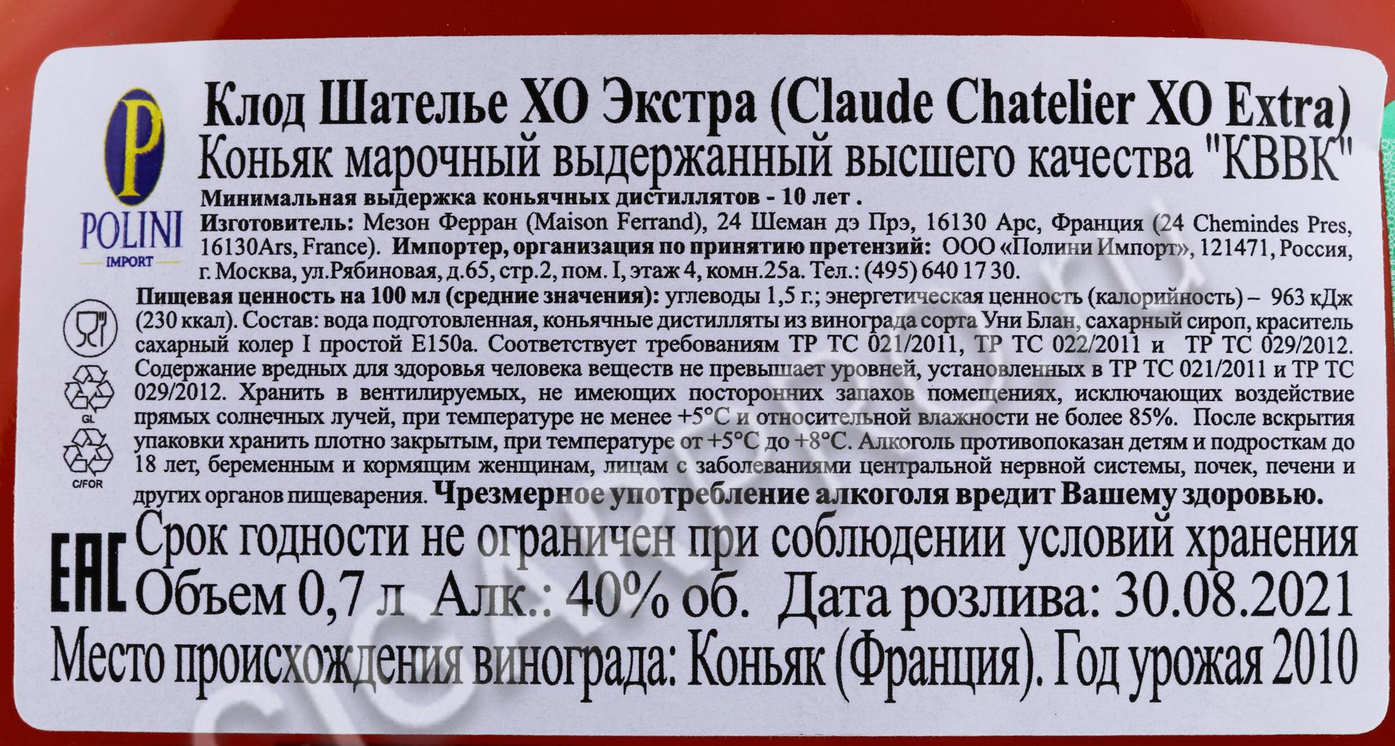 Claude Chatelier XO коньяк Клод Шателье ХО