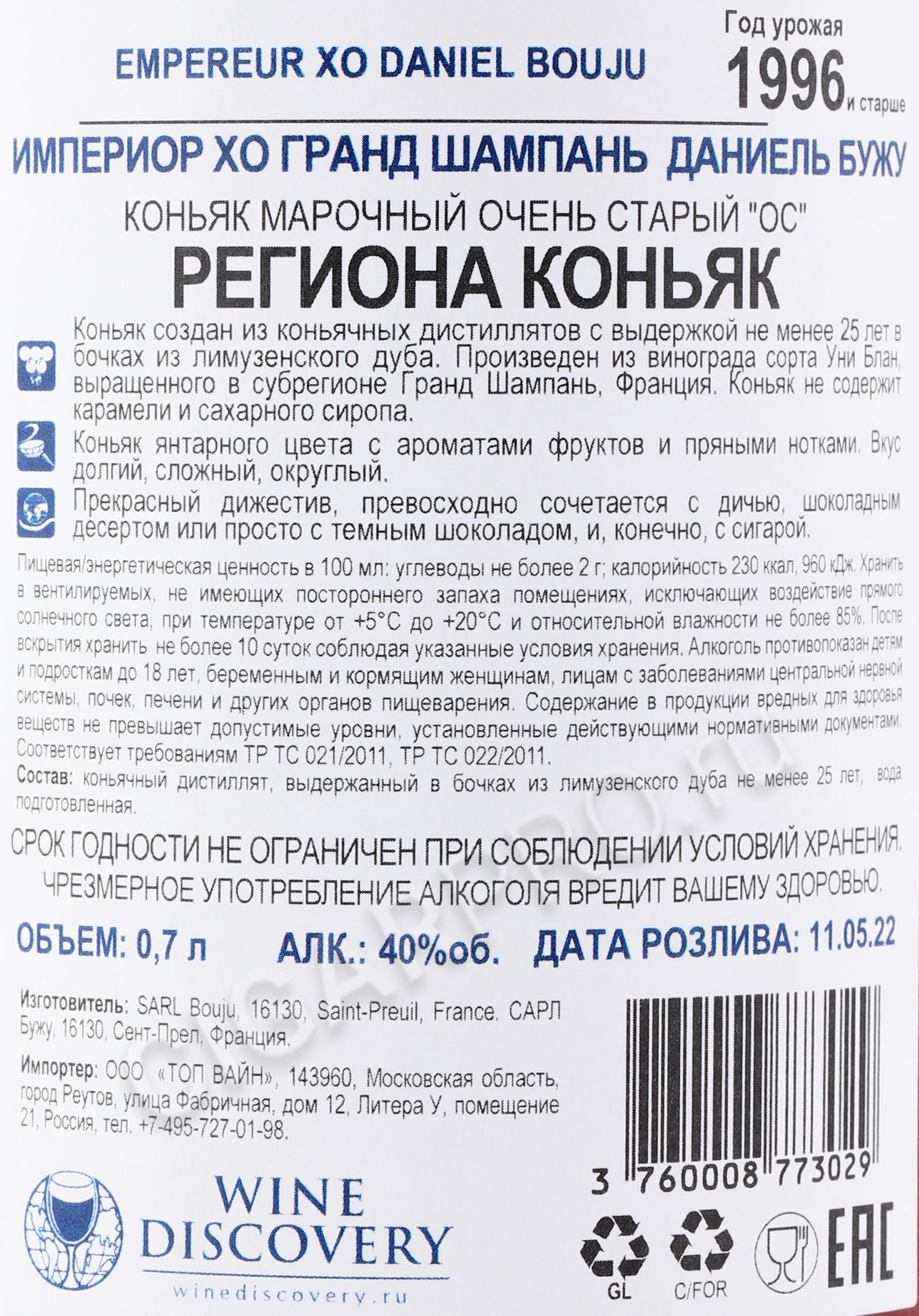 Коньяк Daniel Bouju Empereur XO коньяк Даниэль Бужю Император ХО
