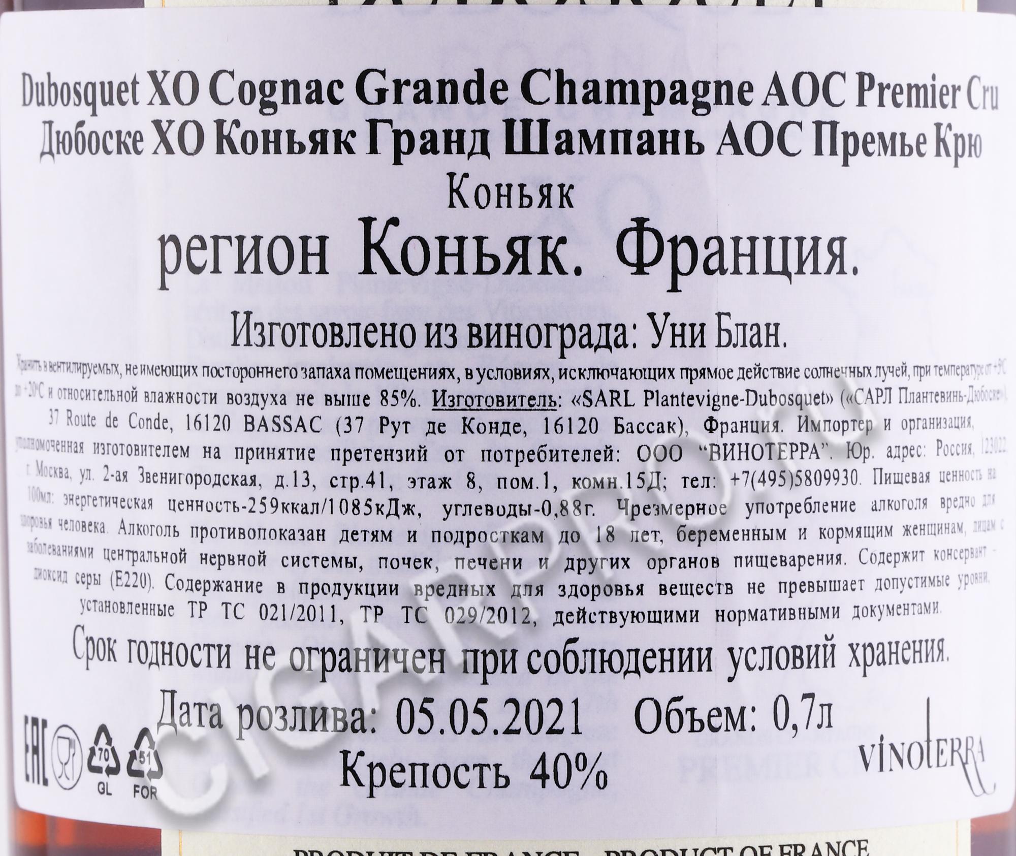 Dubosquet XO Grande Champagne Premier Коньяк Дюбоске XO Гранд Шампань Премье Крю 0.7л в подарочной упаковке