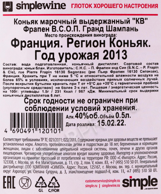 Купаж коньяка состоит из коньячных спиртов, созданных из лучших вин из сорта Уни Блан произрастающего в регионе Гранд Шампань и выдержанного в бочке из Лимузенского дуба 10-12 лет.