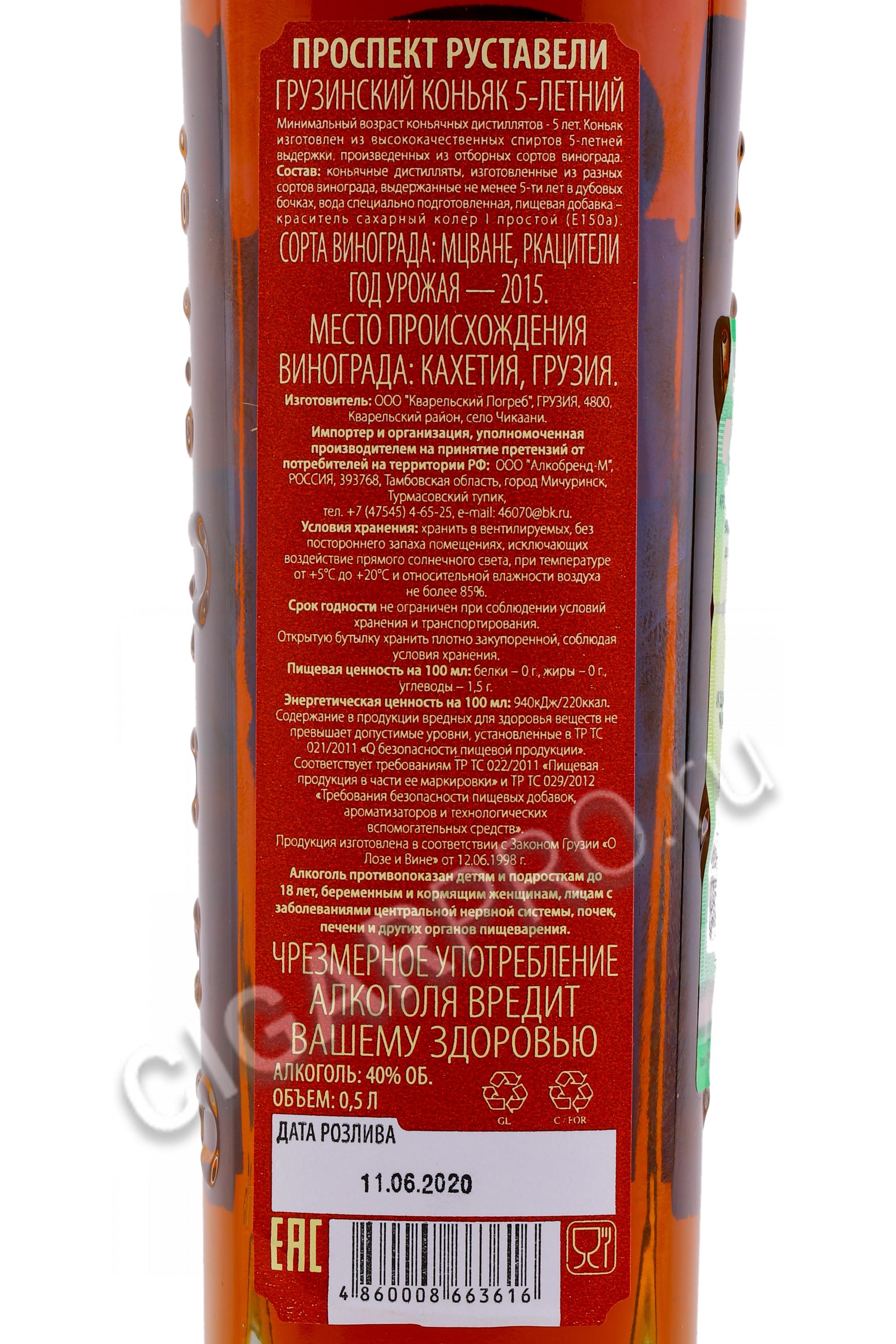 Грузинский коньяк 5 летний серия Проспект Руставели 0.5л