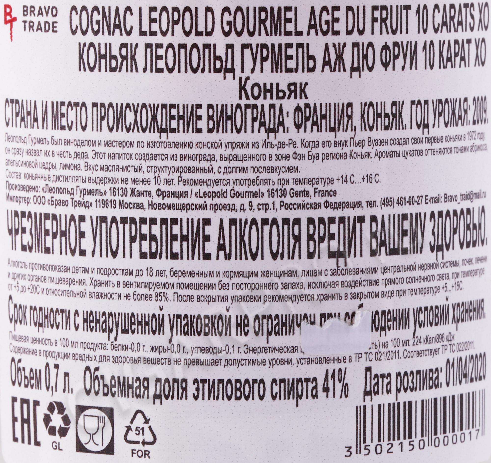 Leopold Gourmel Age Du Fruit Коньяк Леопольд Гурмель Аж Дю Фруи 10 Карат 0.7л в подарочной упаковке