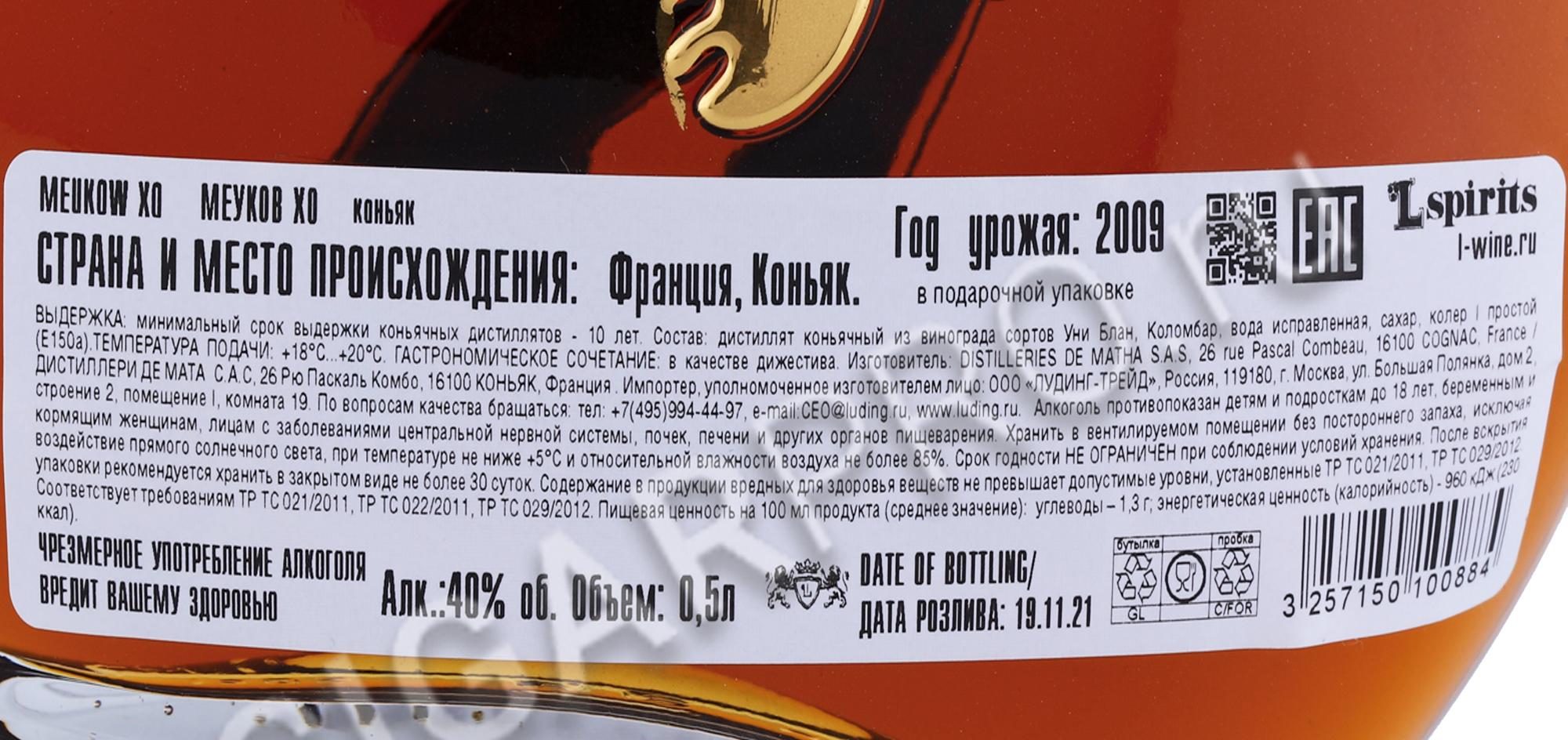 Meukow XO Коньяк Меуков ХО 0.5л в подарочной упаковке