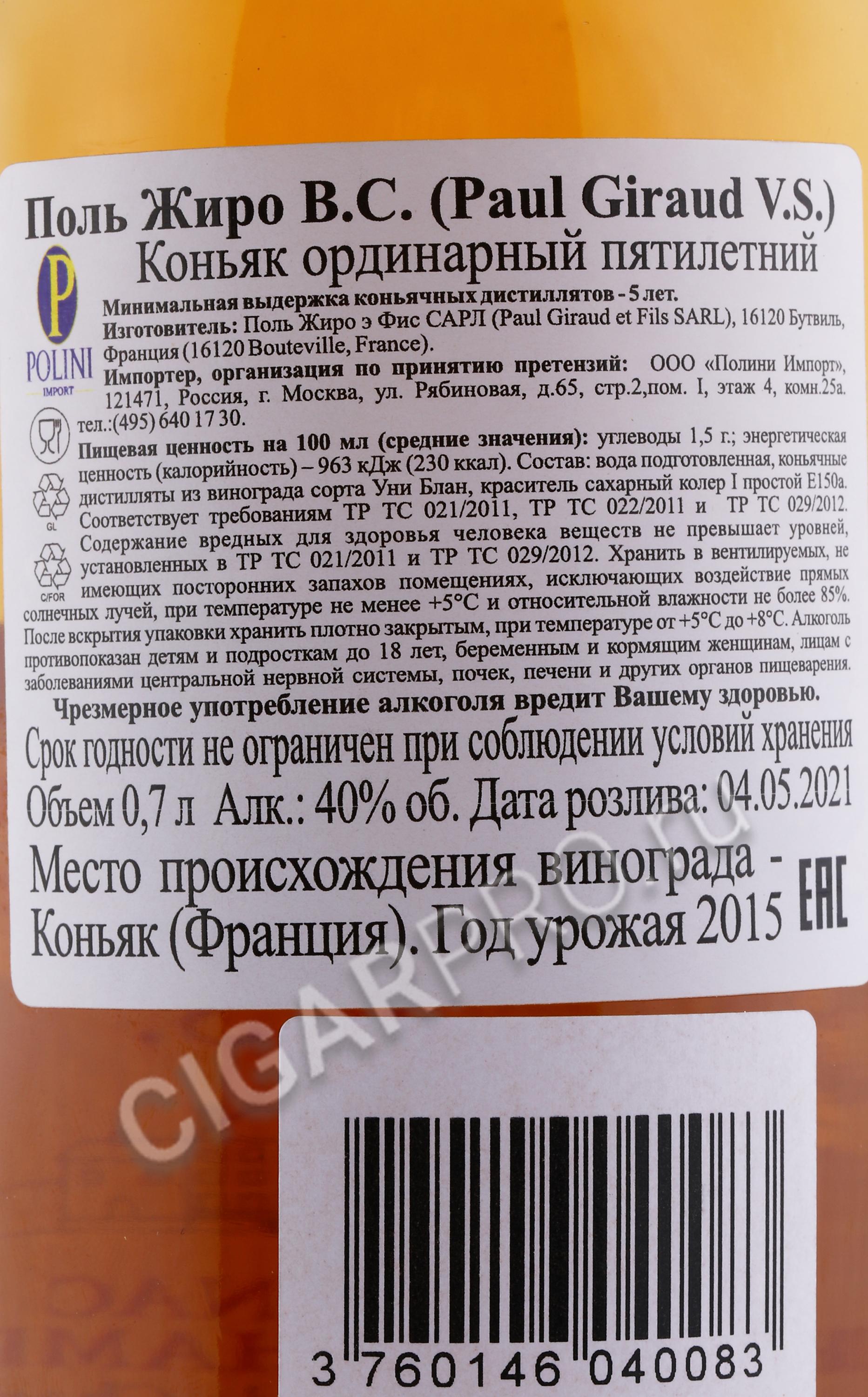 Paul Giraud VS Grande Champagne Premier Cru Коньяк Поль Жиро Гран Шампань ВС 0.7л в подарочной упаковке