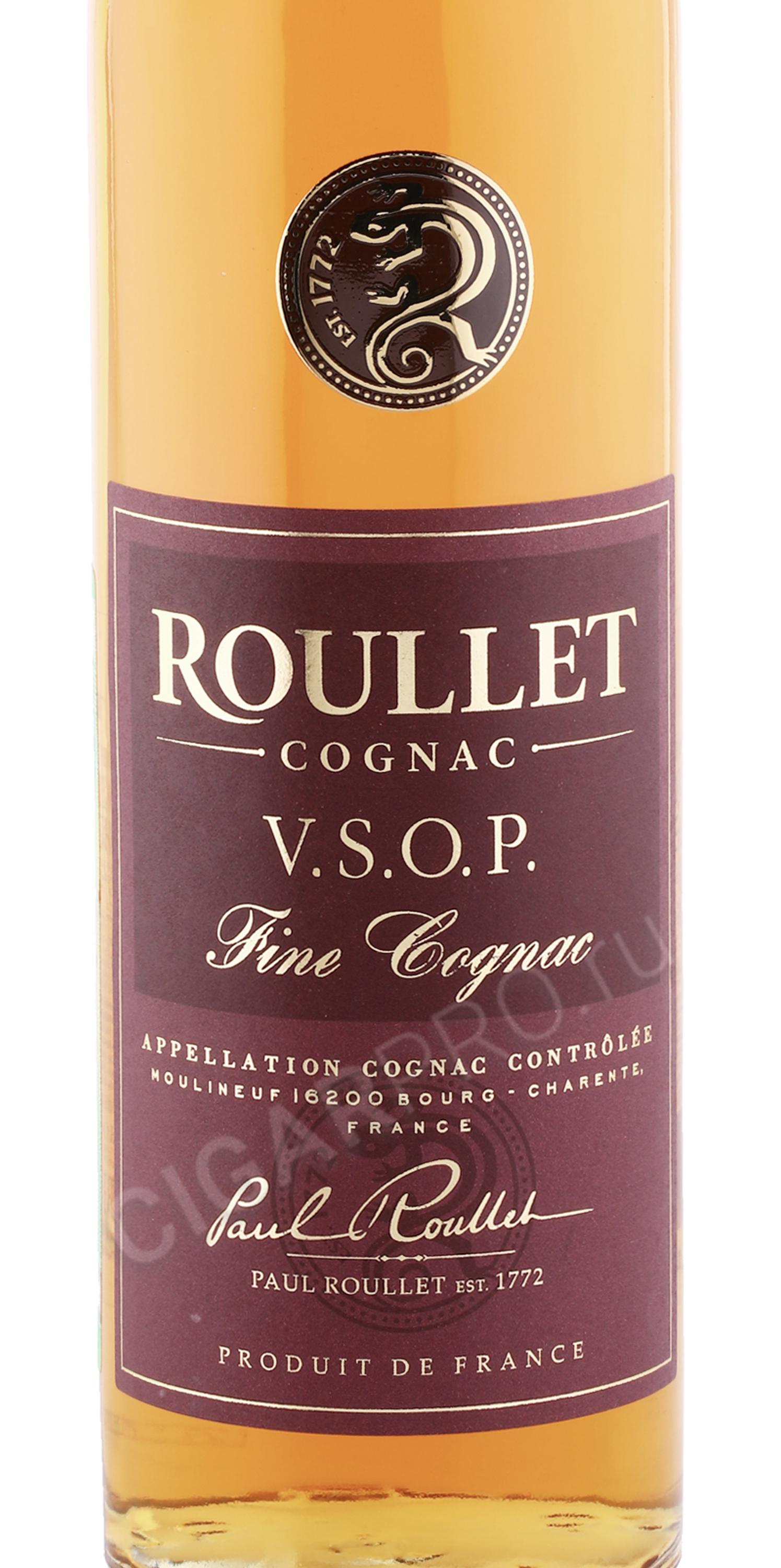 "Roullet" VSOP — французский коньяк, созданный мастерами дома Рулле из коньячных спиртов, которые прошли двойную дистилляцию в шарантских перегонных кубах и не менее 4 лет выдерживались в бочках из французского дуба.