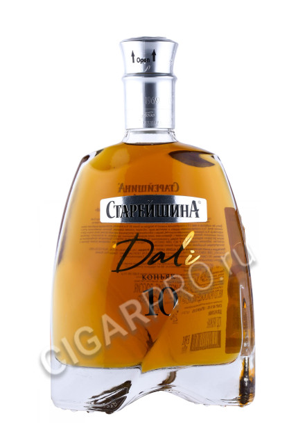 Коньяк Старейшина Dali это чистые сюрреалистичные формы бутылки увенчаные колпаком серебряного цвета, а декорированная цифра 10 как будто подвешена в воздухе, олицетворяя свободу.