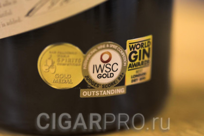 На бутылке указано номер бутылки и изображенны медали за выигранные конкурсы за джин!