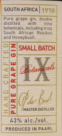 Спирт изготавливается из винограда, и большинство растительных компонентов перегоняется вместе, за исключением трюфеля Калахари, который перегоняется отдельно и затем смешивается с полученной смесью.Подпись мастера-дистиллятора,гарантирует качество джина!