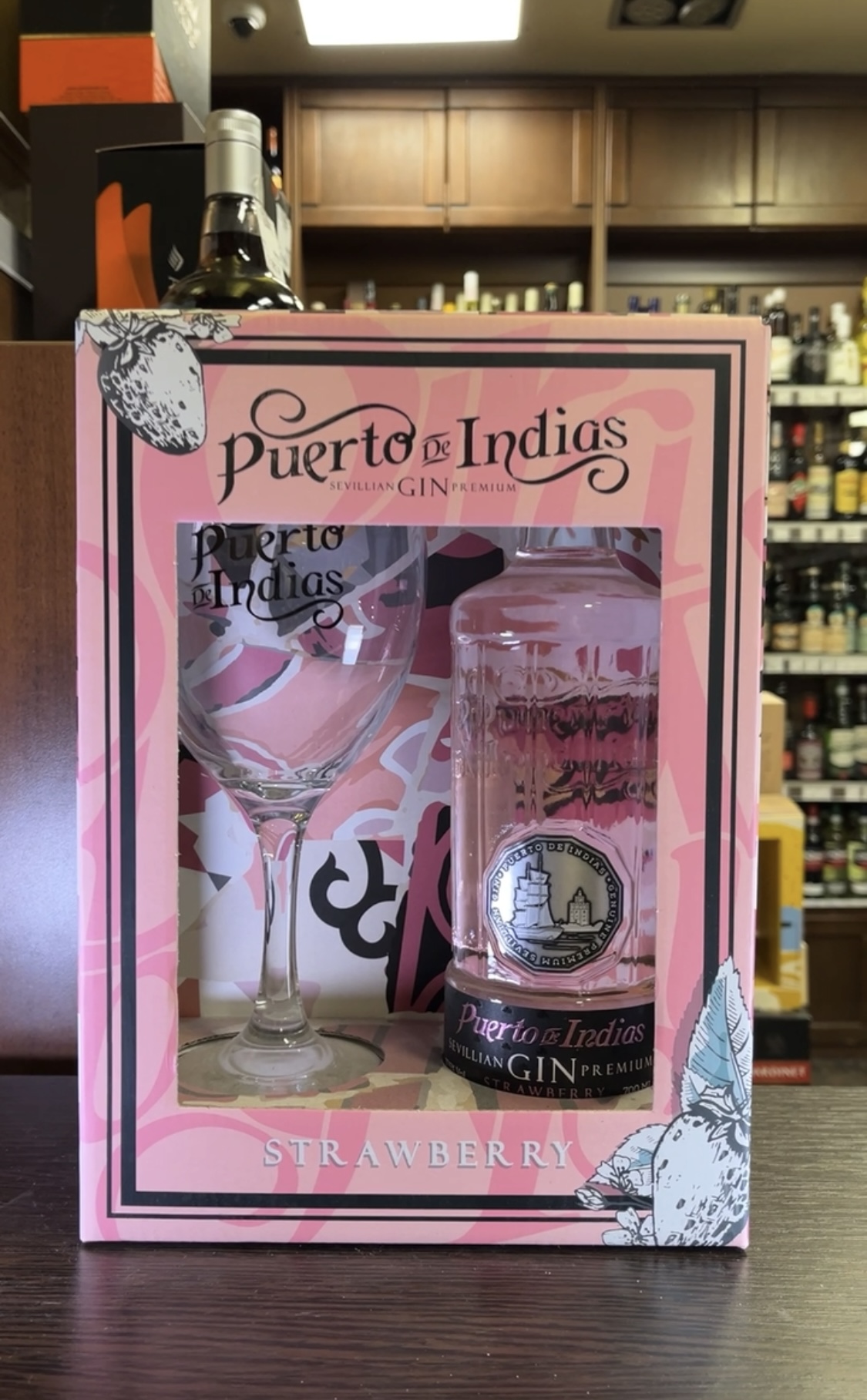Puerto de Indias Sevillian Premium Strawberry Gin Джин Пуэрто де Индиас Севиллиан Премиум Строберри + бокал 0.7л в подарочной упаковке