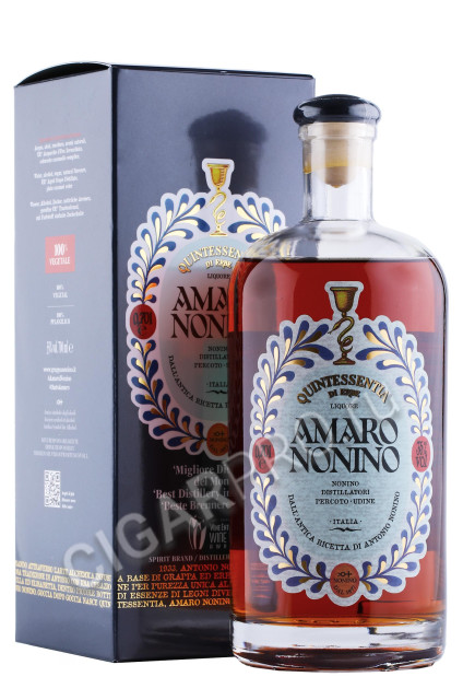 Ликер Nonino Amaro Quintessentia в подарочной упаковке — премиальный 35-градусный десертный алкоголь из итальянского региона Фриули — Венеция-Джулия, созданный по старинному рецепту. Его основой служит граппа, а в роли душистых компонентов выступают альпийские травы. После вымачивания ингредиентов в алкоголе продукт отправляется на выдержку в бочки из лимузенского дуба и баррики из-под хереса на 5 лет. По истечении этого срока спиртное смешивается в нужных пропорциях. Ликер предлагается в красивой бутылке 0,7 л, напоминающей винтажный флакон для микстуры, и комплектуется картонной коробкой с символикой бренда. Напиток стоит приобрести как презент для родственника или коллеги.