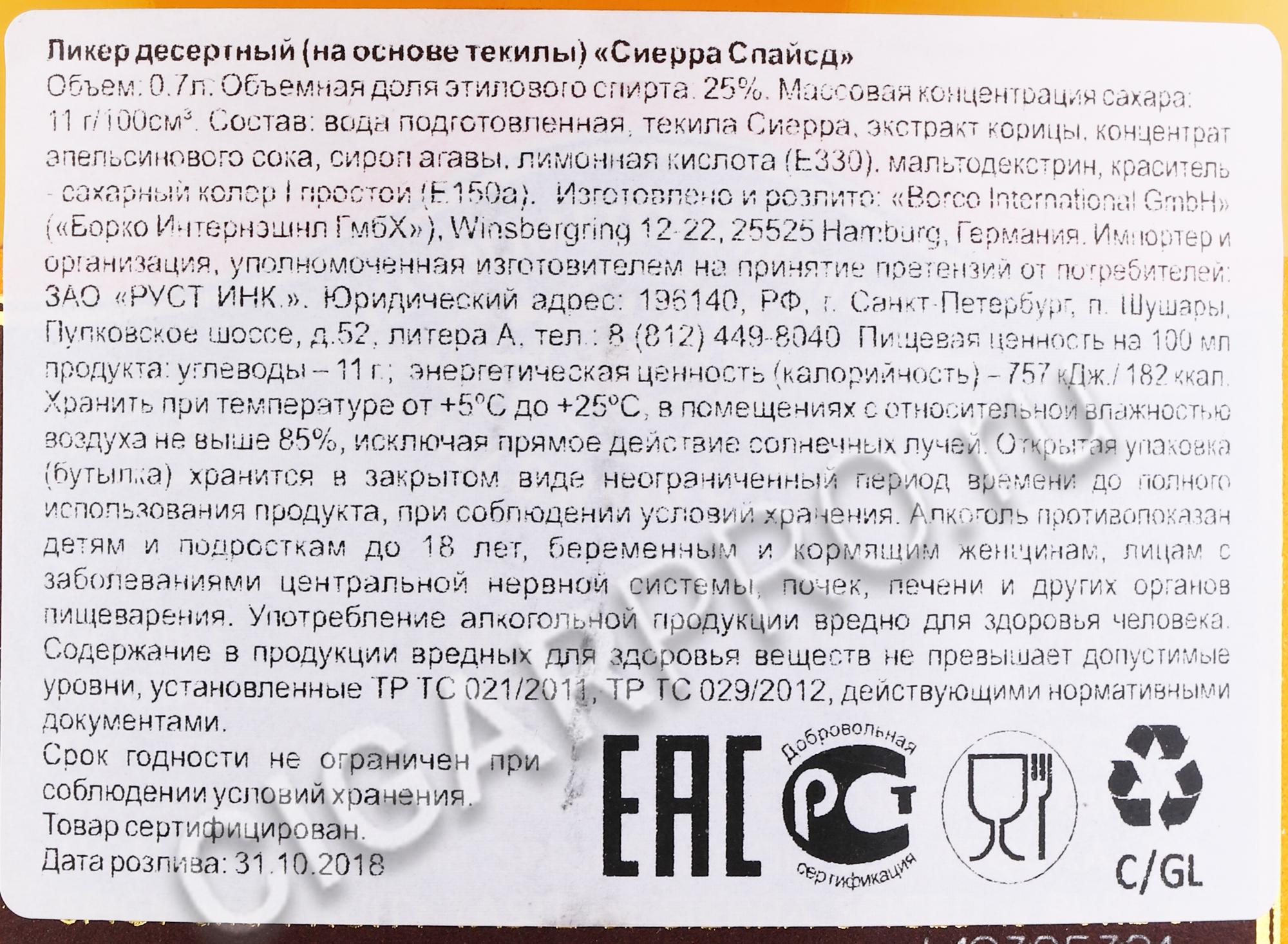 Sierra Spiced Ликер Сиерра Спайсд 0.7л