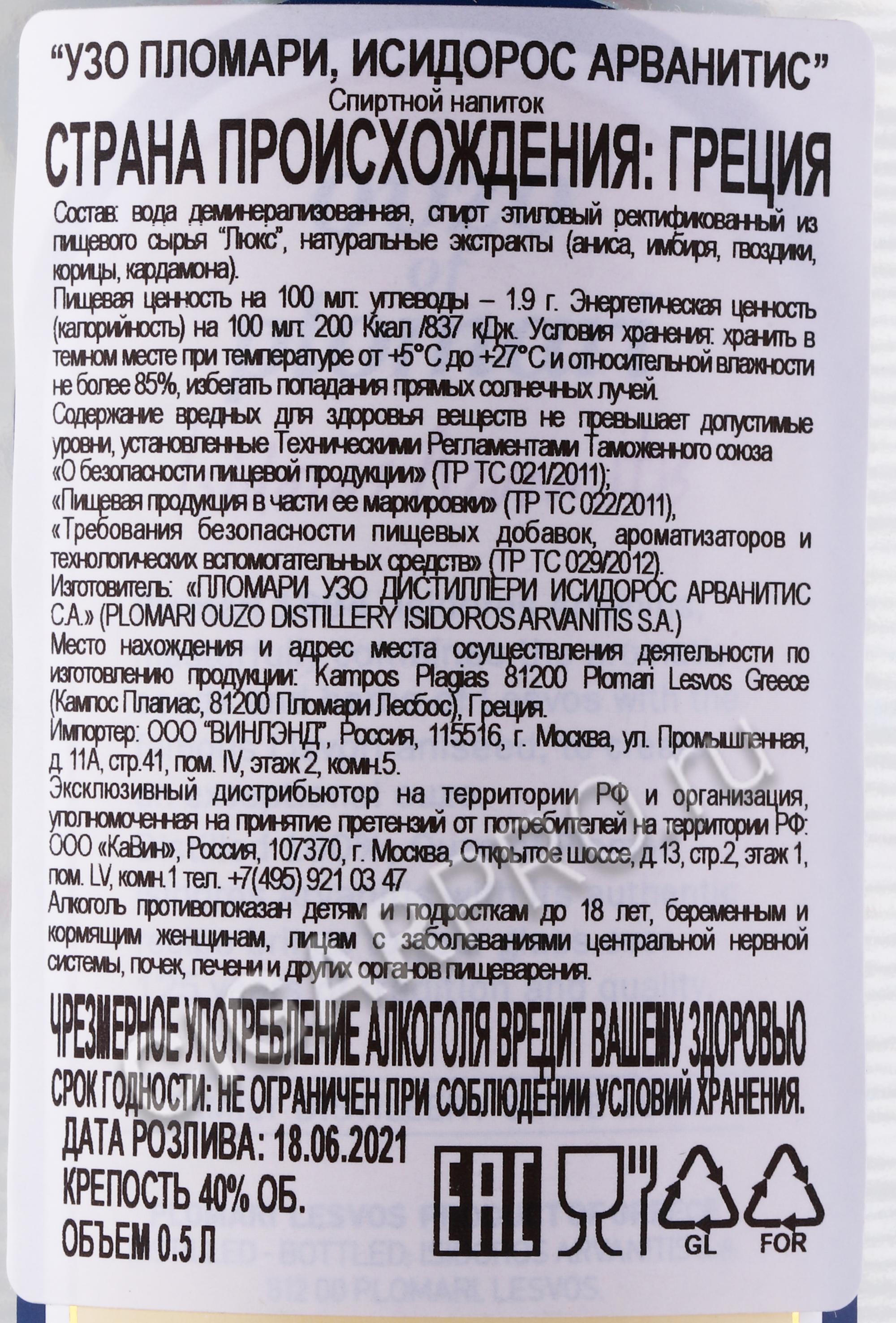 Isidoros Arvanitis Ouzo Plomari Водка Узо Пломари Исидорос Арванитис 0.5л
