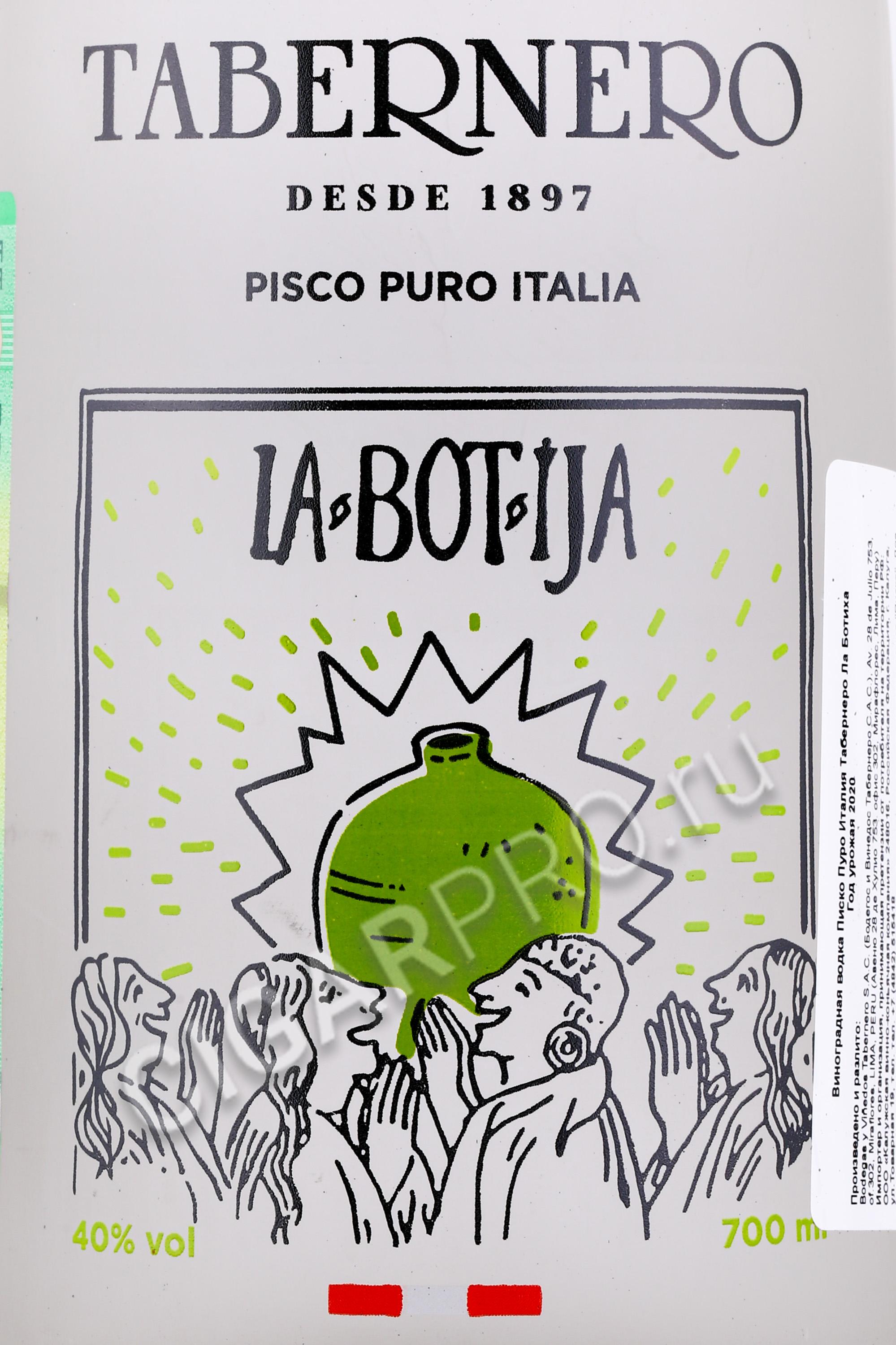 Tabernero La Botija Pisco Puro Писко Табернеро Ла Ботиха Писко Пуро в тубе