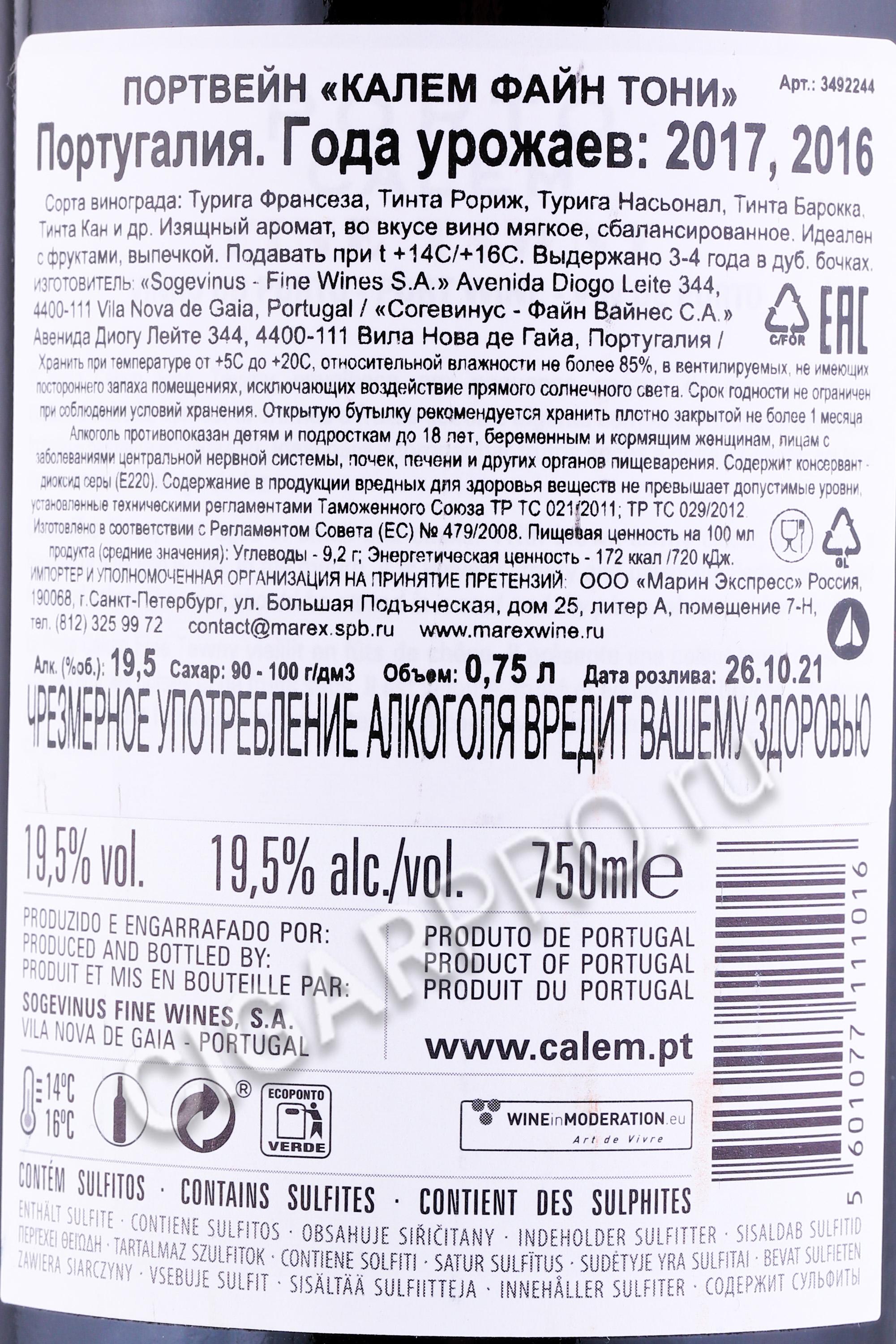 Porto Calem Fine Tawny Портвейн Калем Файн Тони