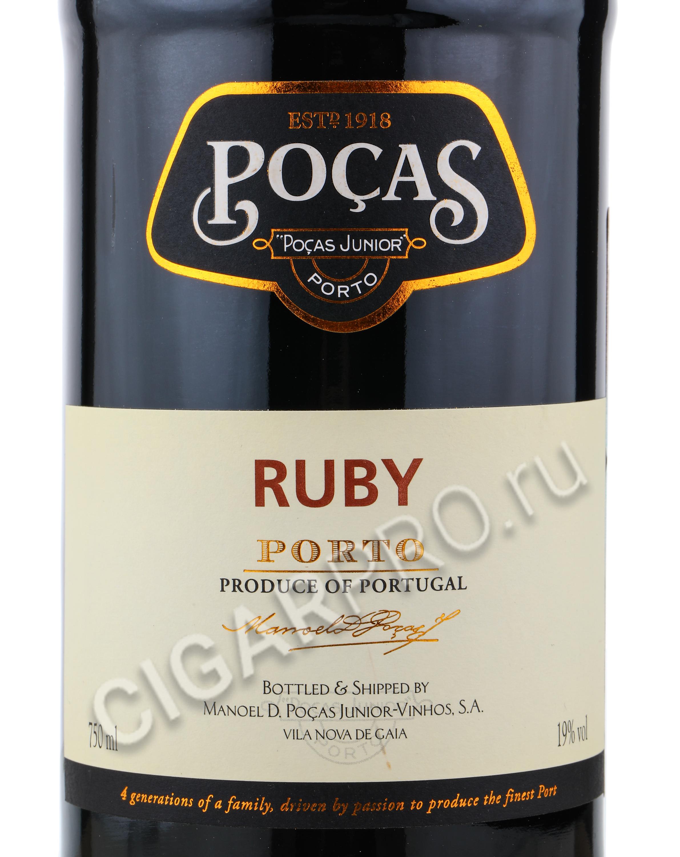Портвейн Pocas Ruby имеет объём бутылки: 0,75 с содержанием сахара: 100 г/л