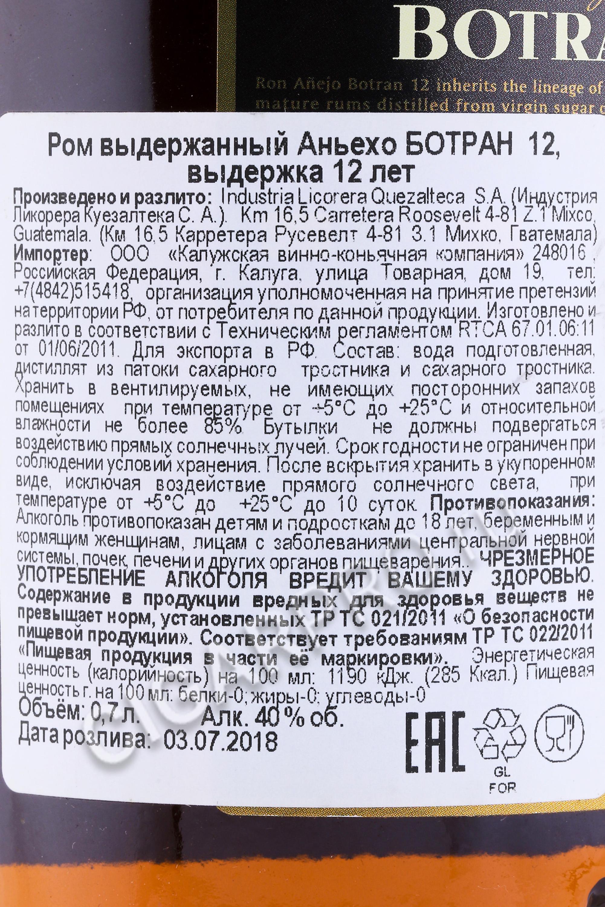 Botran Anejo 12 years ром Ботран Аньехо 12 лет