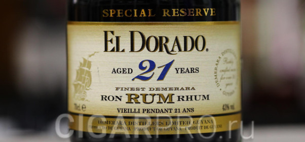 Гайана- родина рома Демерара! Ее единственная винокурня сейчас стоит на берегу реки с тем же названием.Эта бывшая колония славится своим экспортным ромом британского стиля, транспортируемым в цистернах,пряными ромами, очень популярными в стране,но теперь и идущими в экспорт.Компания имеет единственную в стране деревянную, перегонную колону Коффи.Ромы Эль Дорадо 21- высококачественный и редкий ром,который помимо густого пряного и отчётливо жареного аромата обладает чрезвычайной шелковитостью.Рекомендуем ром использовать в качестве дижестива,в чистом виде или в сочетании с сигарой!